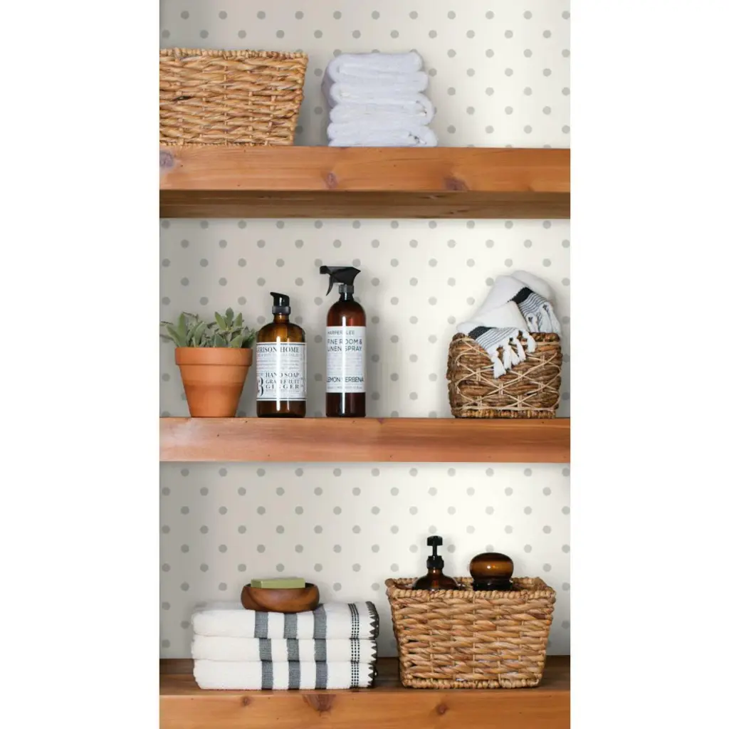 Whimsical polka dots take on calm, clean symmetry and sophistication when created in a palette of gently washed color in this Dots on Dots Wallpaper. This product is a superior luxury non-woven peel and stick wallpaper, which removes easily in full strips without damage to surfaces. Due to the overwhelming success of our first collection, we invite you to enjoy this new offering of more great classic designs from Magnolia Home by Joanna Gaines, now on Premium Peel + Stick. Includes 1 roll - 20.5 in x 20 ft = 34.17 sq ft with a straight reversible match and 3.375 in repeat.