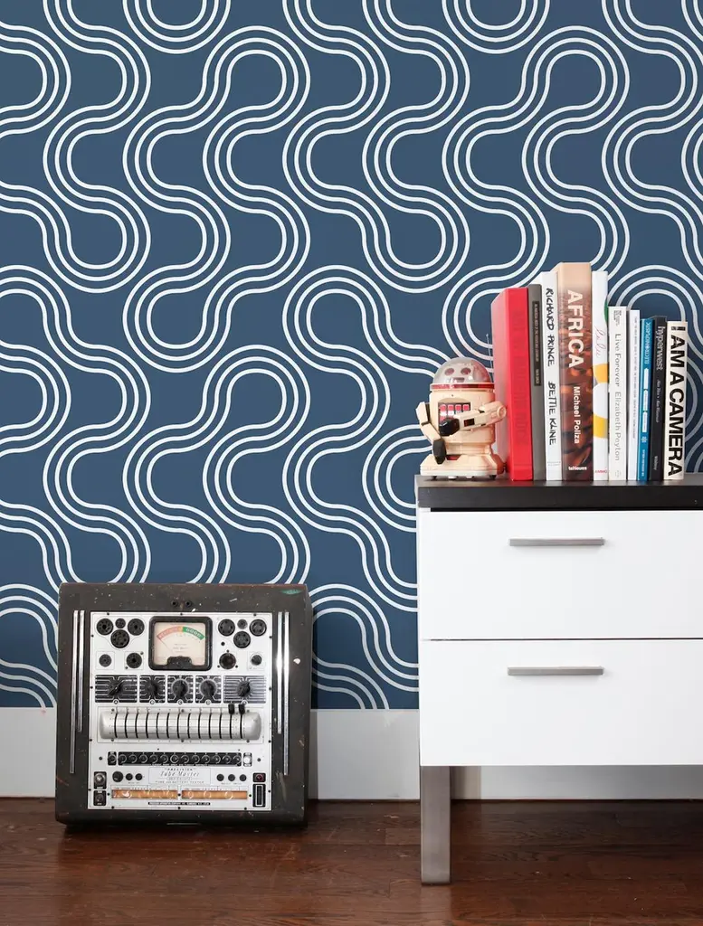 This oversized sexy 1960s geometric adds mod flair to your space.Samples are available for $18 including US shipping, please message us to purchase. Printing: Screen-printed by hand (must be ordered in even increments).Material: FSC-certified paper.Trimming: This product may come pre-trimmed or untrimmed.Packaging: May be shipped as double rolls, or as a combination of double and single rolls.Single roll: 28 inches × 5 yards (71.12 cm × 4.5 meters)Sample:~ 8 × 10 inches (20.3 × 25.4 cm)Design Repeat: 28 inches (71.12 cm)Design Match: StraightMade in the USA. Ships worldwide.Commercial grade options available; please contact us for more information.