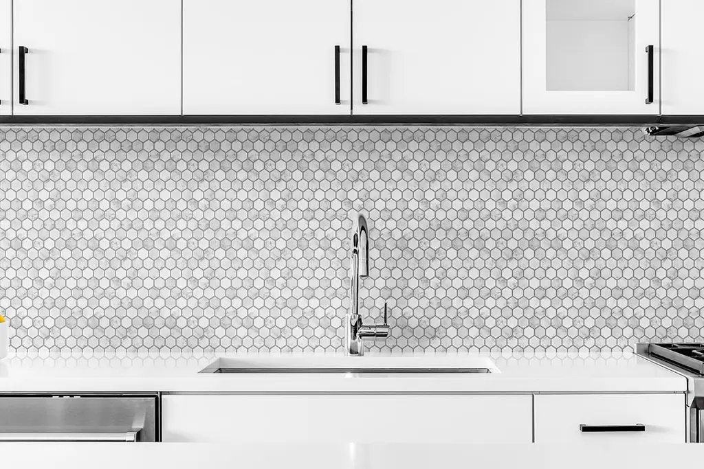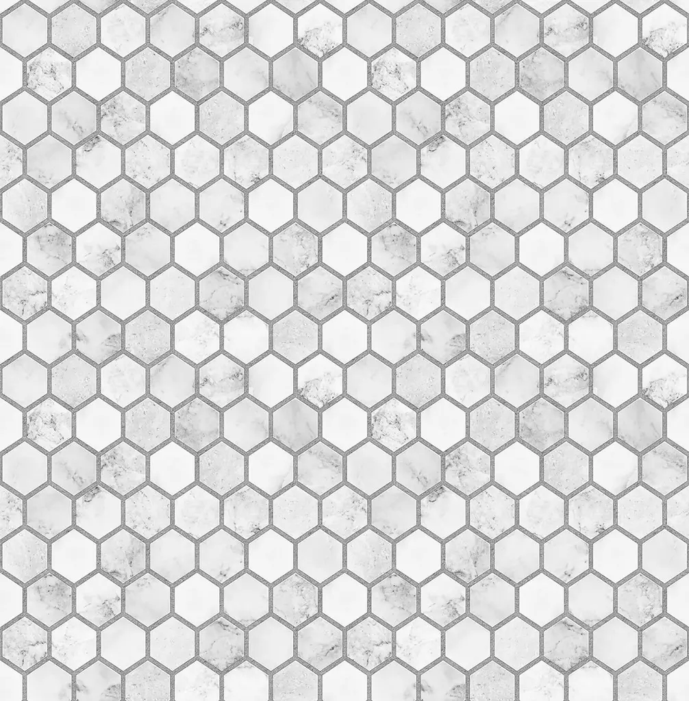 Marble Hexagon Peel-and-stick Wallpaper In Carrara And Argos Grey