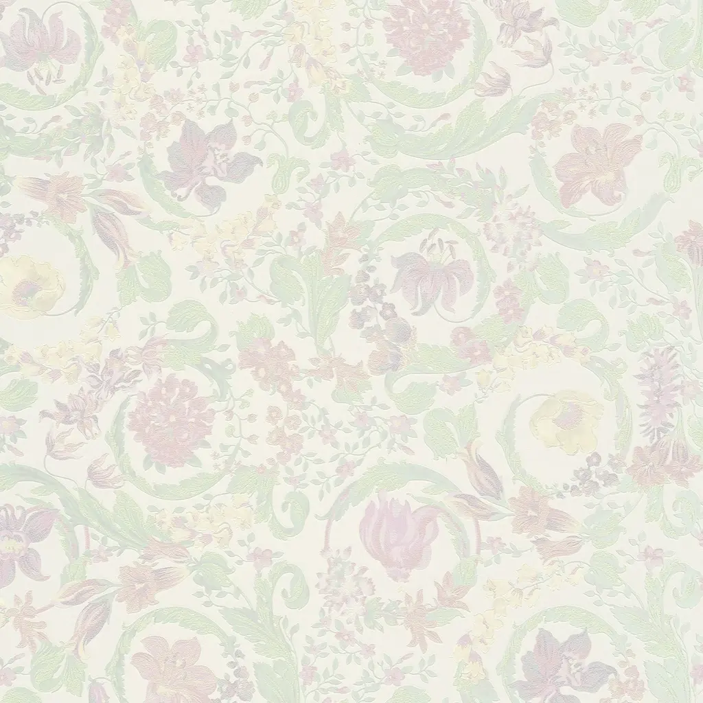 Mary Isobel wallpaper features scrolling acanthus leaves and flowers and was inspired from the original design of the 1890's. Match: Straight | Pattern Repeat (inches): 29.9