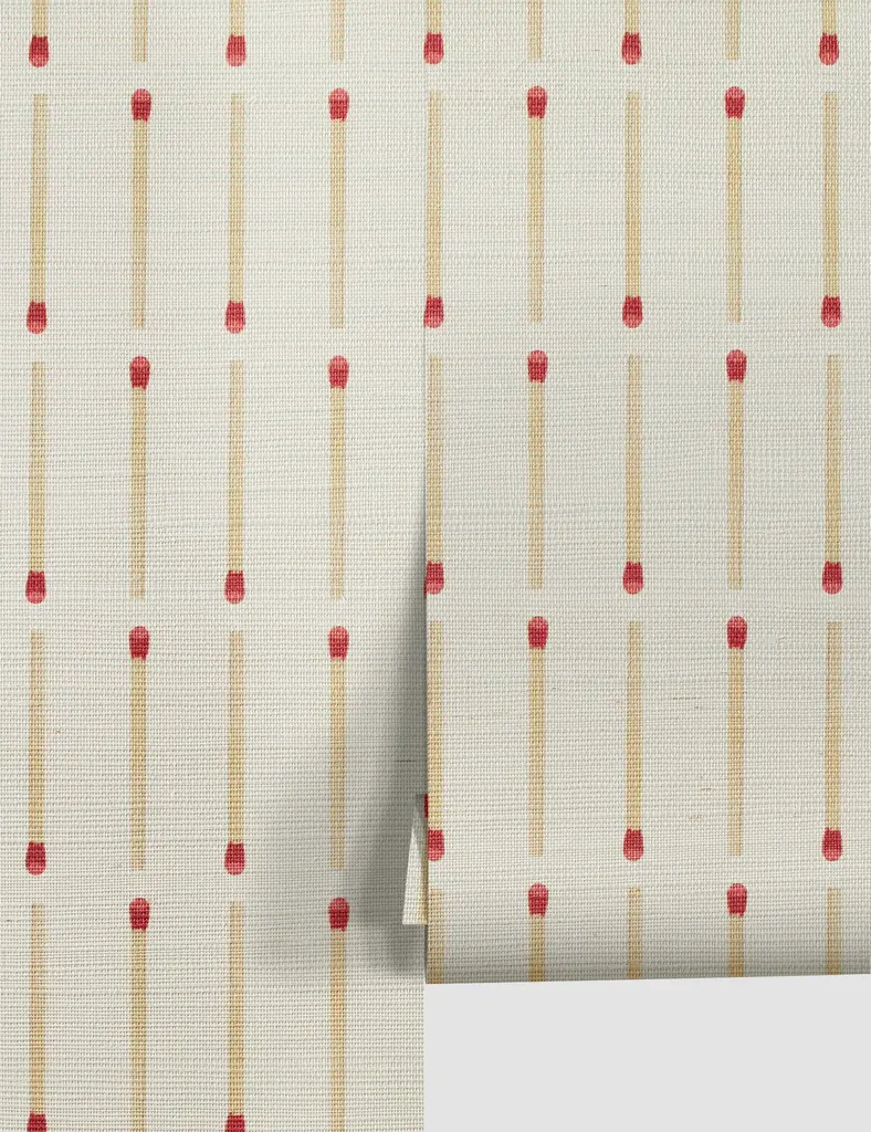 Full of whimsy and graphic appeal, this matchstick wallpaper pattern offers fresh and charming style. This woven home wallpaper offers a unique design element as a textural layer for a kid's room or studio space.