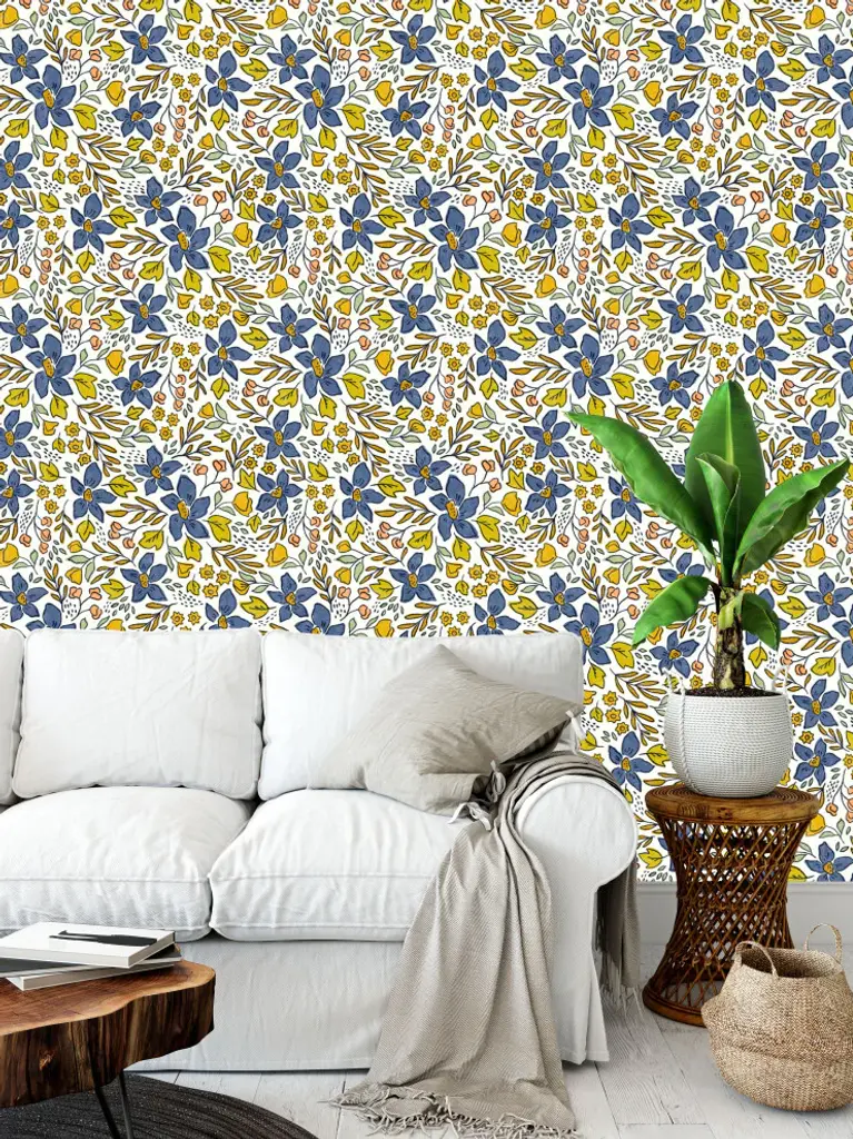 Each roll of wallpaper is custom printed to order and has a fixed width that covers 24 inches of wall space. Peel & Stick Fabric Wallpaper - Removable and Repositionable! Limitless Walls Fabric Peel and Stick wallpaper is a woven polyester fabric with an adhesive backing. Limitless Walls fabric is not like everyone else"™s, ours is the thickest most durable and easiest to install. You won"™t be able to find this anywhere else since we make it ourselves!• 100% opaque white polyester woven with adhesive backing• Eco-friendly and formaldehyde-, phthalate-, and PVC-free• To install, simply peel and stick• Easily removable and repositionable IMPORTANT NOTE Our wallpapers are not recommended for application over paints advertised as being stain-resistant or washable. These paints are crafted to prevent things from sticking -- including wallpaper. If in doubt, you can use Zinsser Gardz which is a clear primer that you can apply right over your current paint. If your wall has been recently painted, allow at least 2+ weeks for the paint to cure before applying wallpaper. Applying wallpaper over uncured paint can lead to bubbling. Our wallpaper will not stick to cement or textured walls.We highly recommend ordering a test swatch before committing to full rolls. While we have done our best to accurately represent the color and scale of this design, computer monitors aren''t the best way to determine how a printed color will look in person. It''s possible that the finished product may be slightly different than it appears in the preview. It is also important to test the adhesive on your unique surface.CARE INSTRUCTIONS:Gently wipe down with a damp cloth, soft cleaners such as dish soap can be used. The use of heavy cleaners or heavy rubbing can cause color to lift.Original Design by Amy MacCready.
