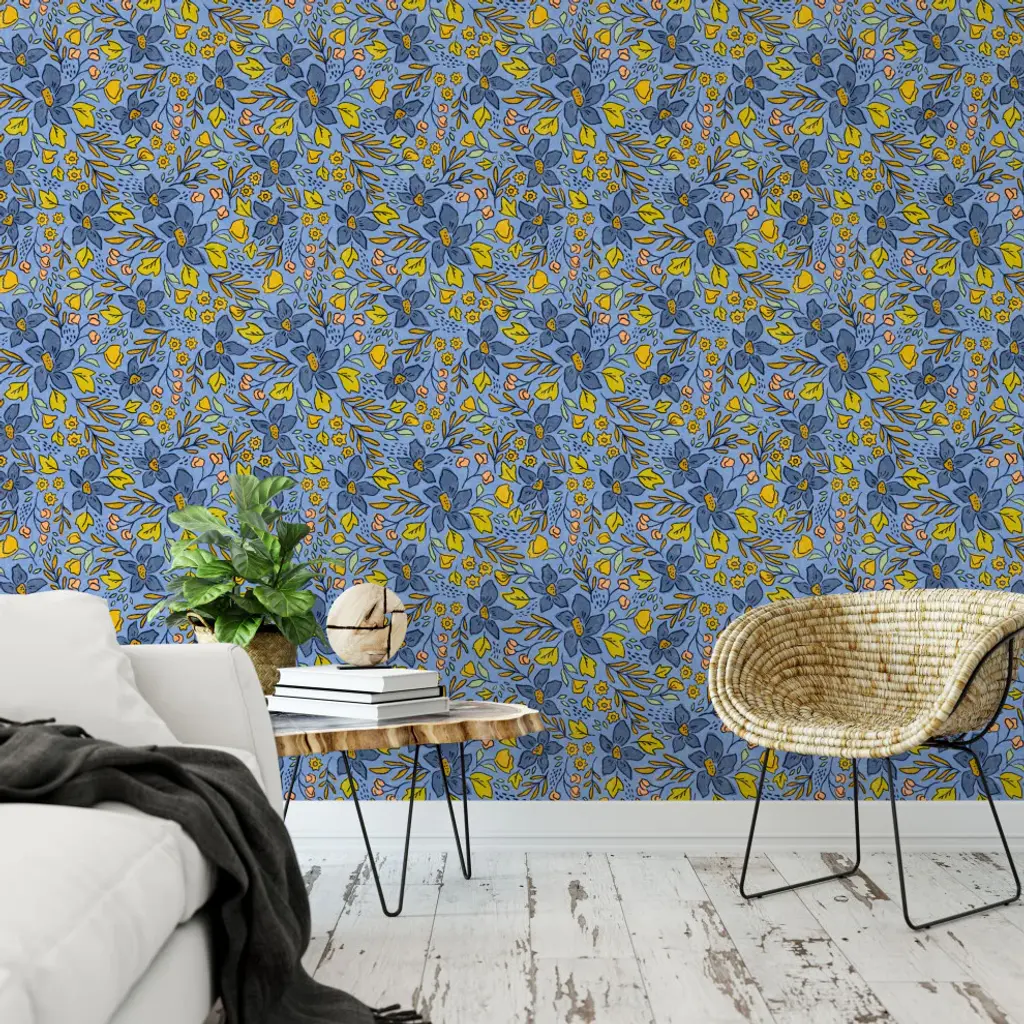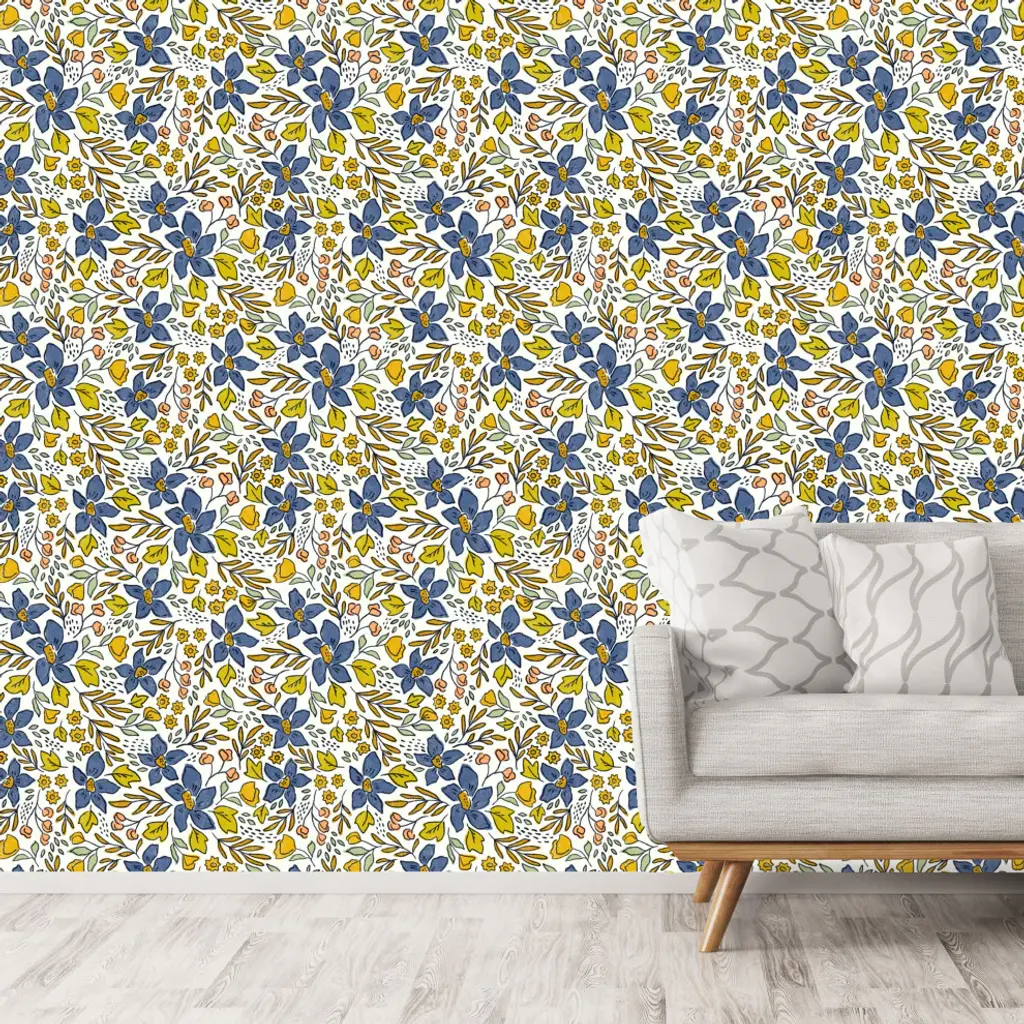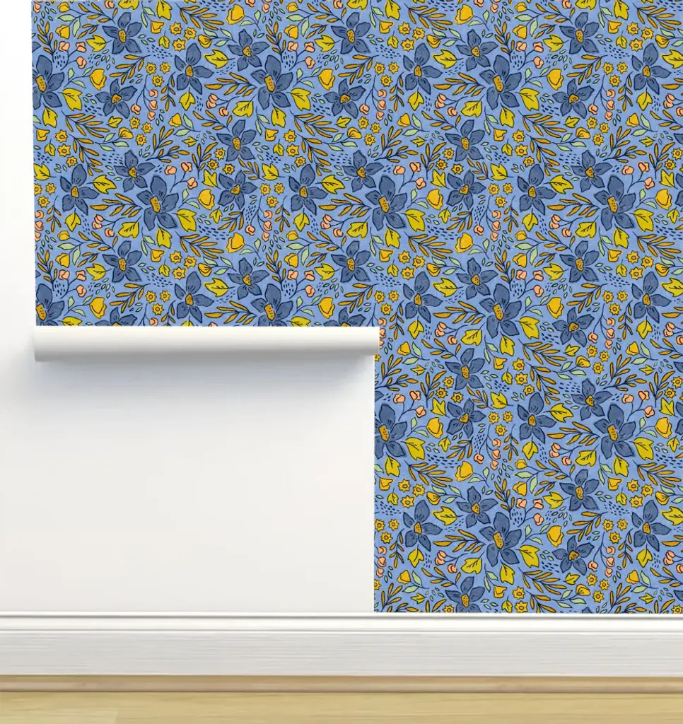 Each roll of wallpaper is custom printed to order and has a fixed width that covers 24 inches of wall space. Peel & Stick Fabric Wallpaper - Removable and Repositionable! Limitless Walls Fabric Peel and Stick wallpaper is a woven polyester fabric with an adhesive backing. Limitless Walls fabric is not like everyone else"™s, ours is the thickest most durable and easiest to install. You won"™t be able to find this anywhere else since we make it ourselves!• 100% opaque white polyester woven with adhesive backing• Eco-friendly and formaldehyde-, phthalate-, and PVC-free• To install, simply peel and stick• Easily removable and repositionable IMPORTANT NOTE Our wallpapers are not recommended for application over paints advertised as being stain-resistant or washable. These paints are crafted to prevent things from sticking -- including wallpaper. If in doubt, you can use Zinsser Gardz which is a clear primer that you can apply right over your current paint. If your wall has been recently painted, allow at least 2+ weeks for the paint to cure before applying wallpaper. Applying wallpaper over uncured paint can lead to bubbling. Our wallpaper will not stick to cement or textured walls.We highly recommend ordering a test swatch before committing to full rolls. While we have done our best to accurately represent the color and scale of this design, computer monitors aren''t the best way to determine how a printed color will look in person. It''s possible that the finished product may be slightly different than it appears in the preview. It is also important to test the adhesive on your unique surface.CARE INSTRUCTIONS:Gently wipe down with a damp cloth, soft cleaners such as dish soap can be used. The use of heavy cleaners or heavy rubbing can cause color to lift.Original Design by Amy MacCready.