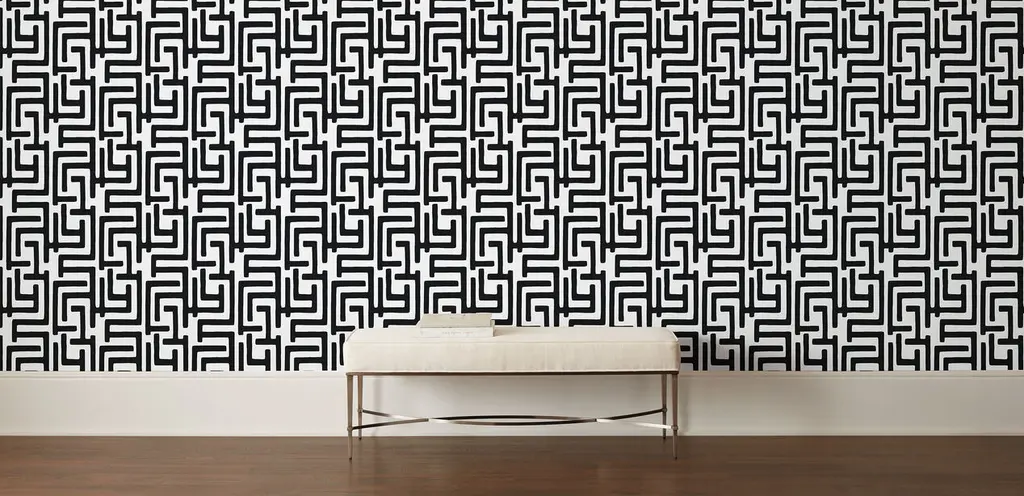 It's not hard to find your way to loving this bold geometric wallpaper that's destined to be the focal point of any room.