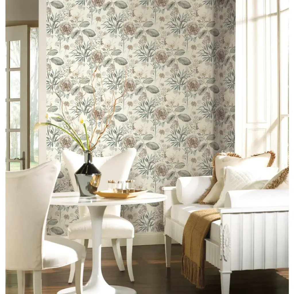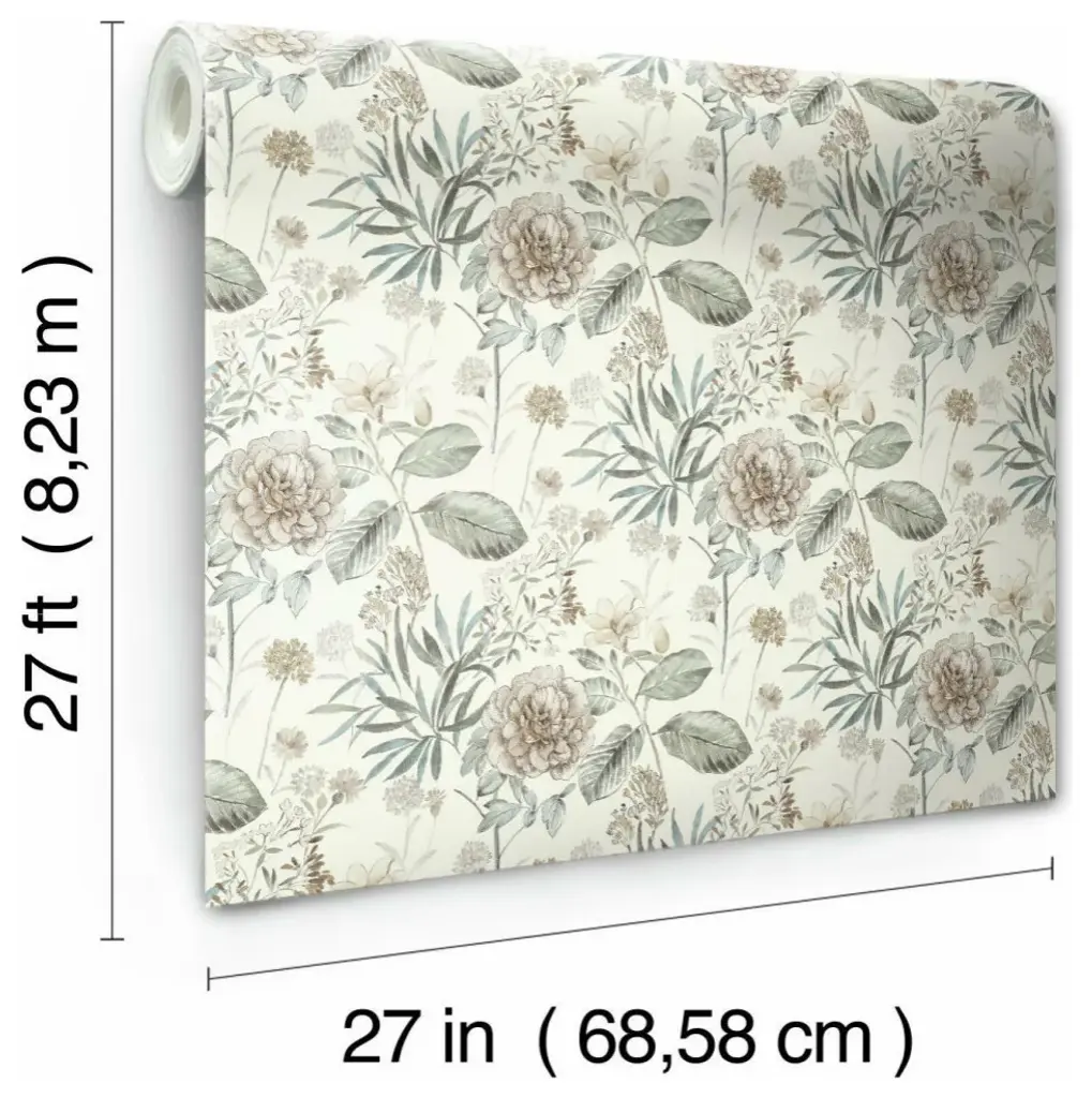 The warmth, color, and serenity of Midsummer Garden Wallpaper brings the unparalleled beauty of handpainted botanical artistry to the home all year round. This Midsummer Floral Wallpaper measures approximately 27 inches wide by 27 feet long, covering About 60.8 square feet per roll. Manufactured on Sure Strip, a unique high performance substrate, this ultra-easy removable wallpaper is guaranteed easy to install and easy to remove; simply use water to activate. Prepasted sure strip material; 24-in repeat, drop match; Washable and strippable; 27-in by 27-ft long roll; Covers about 60.8 square feet