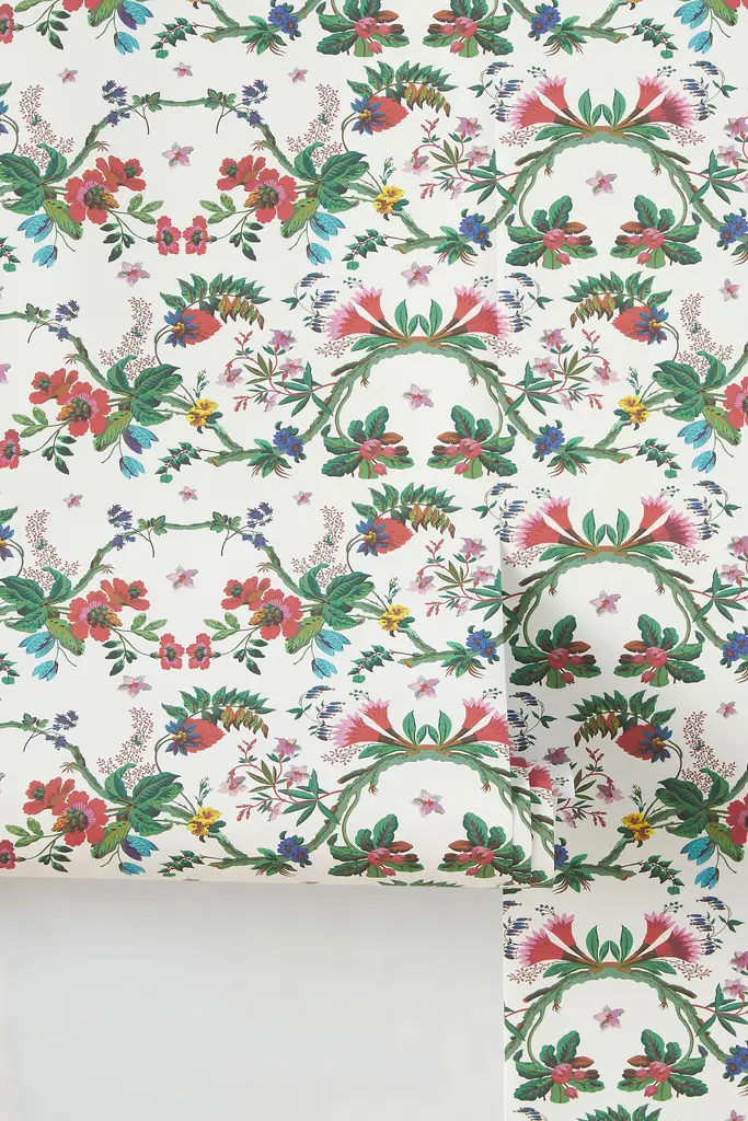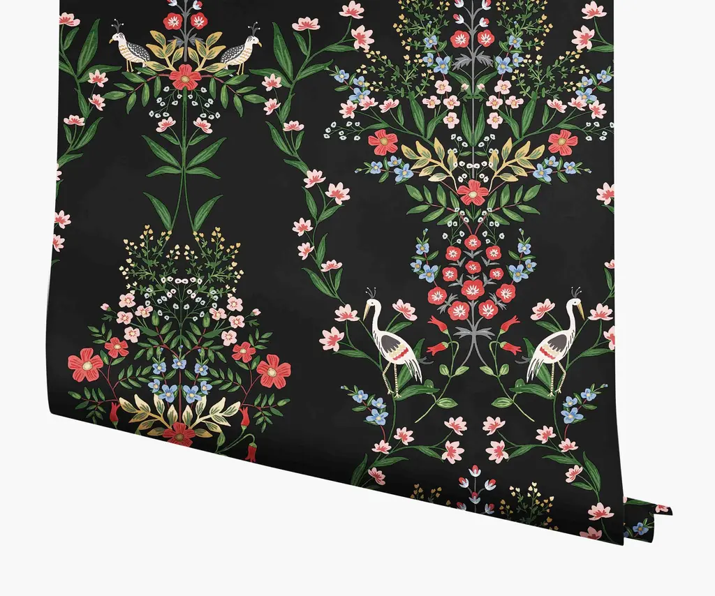 Lend unexpected charm to your walls with this wallpaper design from female-founded brand Milola Design. The bloom pattern runs at a horizontal, which creates an unexpected and modern flow to a wallpaper design adapted from an 18th Century French Chinoiserie.To calculate the square footage of your space, we recommend combining the width of each wall, then multiplying this number by your ceiling height. Next, divide this number by the square footage of a single roll of wallpaper to determine the number of rolls required. Always round up to account for pattern repeat and variation.Need help choosing the right wallpaper for your home? Read our guide to transforming your walls - and your space.