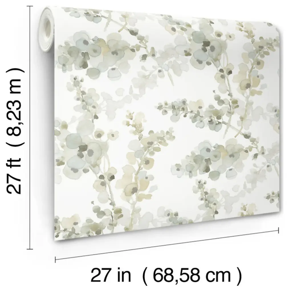 Stems of frothy green, teal, and pale grey watercolor petals accented with metallic silver make Blossom Fling a vivacious classic with fresh perspective. This Blossom Fling Wallpaper measures approximately 27 inches wide by 27 feet long, measuring approximately 60.8 square feet per roll. Organic simplicity and lustrous adornment for the modern home. Unpasted non woven material24-in repeat, straight matchWashable and strippable27-in by 27-ft long rollCovers about 60.8 square feet