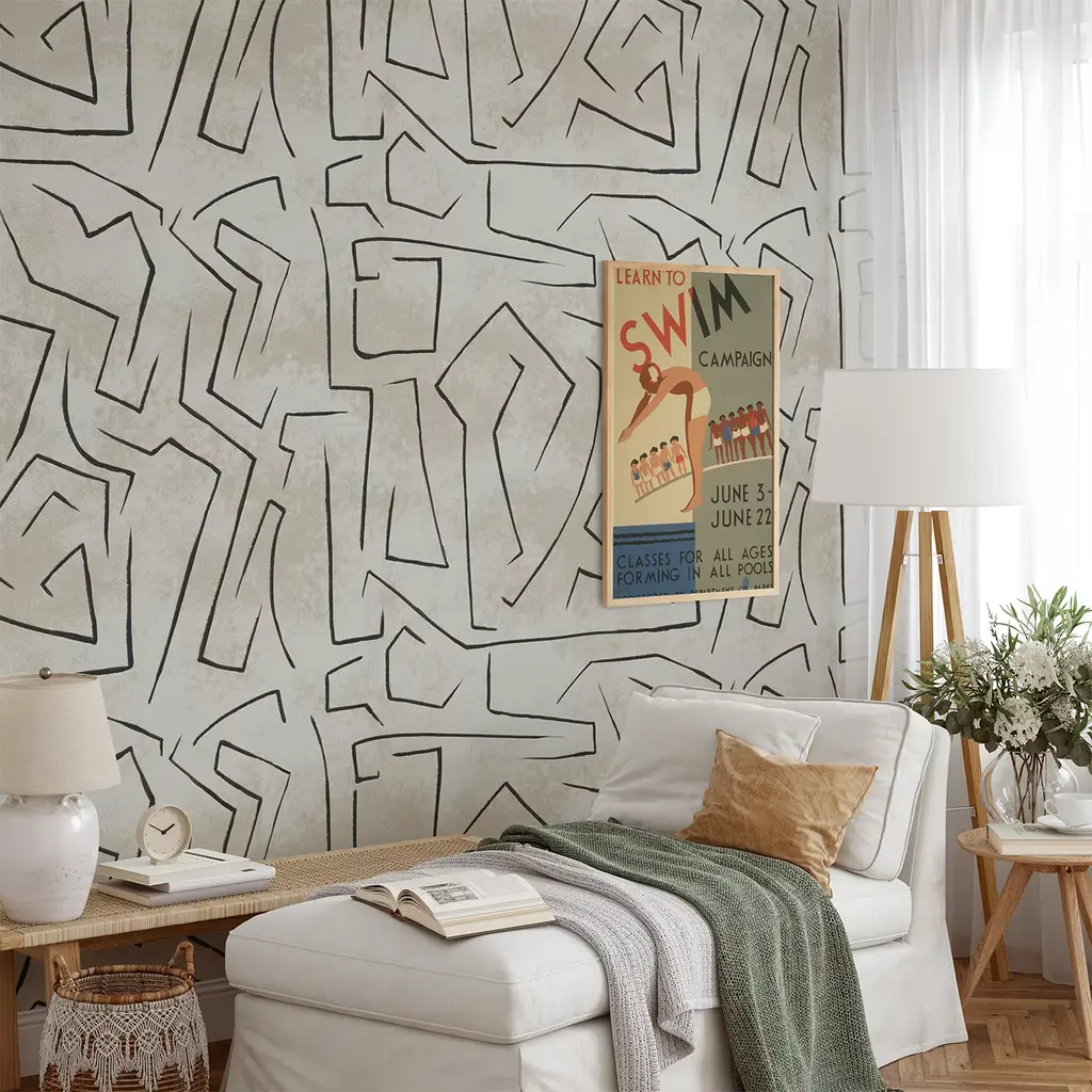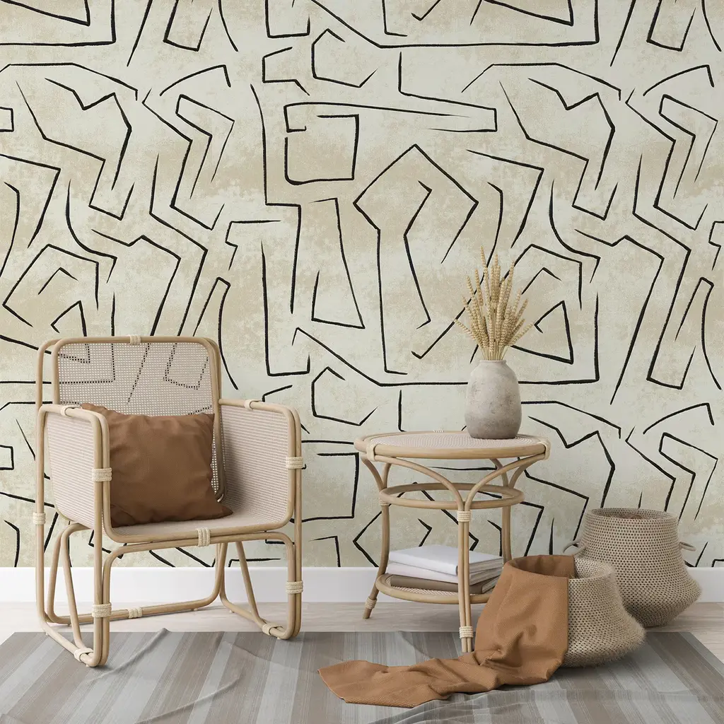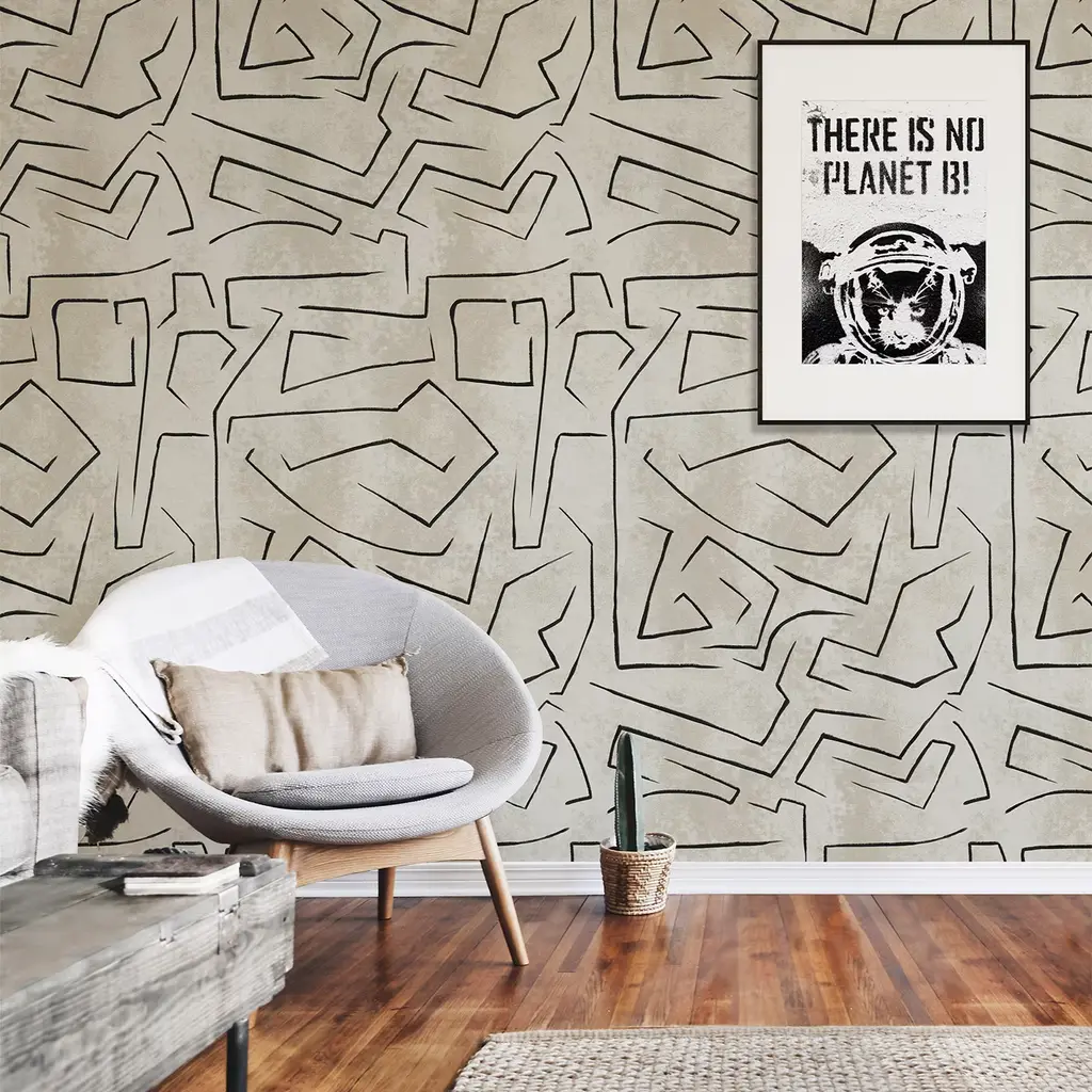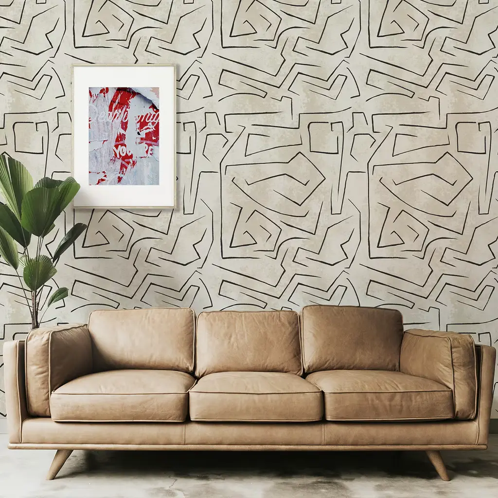 Ecological wallpaper, crafted from vegan water-based inks, designed and printed in Italy using the most advanced technologies. Versatile for walls, shelves, and furniture, for lovers of abstract and intriguing design this wall covering is a must-have. Created with the geometric brushstroke technique, it adds an artistic flavor, perfect for any space. It's a unique focal point in any setting. Instructions are included. Each sheet measures 27.5x39.4 inches/70x100 cm, covering a total area of 5 MQ.
