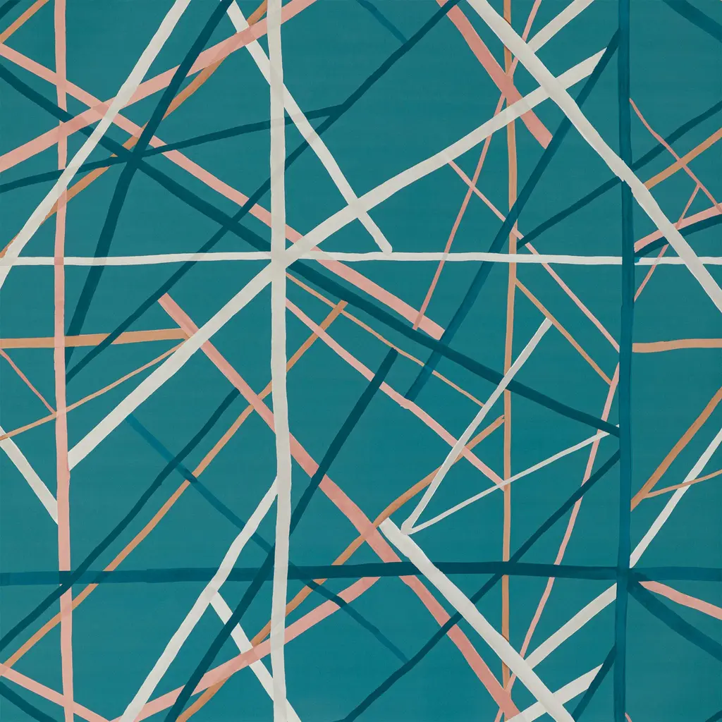 Available in a variety of striking multi-tonal color options, this Modern Geometric Wallpaper features a layered stripe pattern that's organic and abstract, melding the aesthetics of art and design. Created by American designer Kelly Wearstler, this collaboration has created vibrant and inspired high-quality wall coverings filled with natural materials, graphic patterns, and eye-catching colors. Reemerging as a top trend in home decor, wallpaper allows you to create a unique aesthetic with a bold backdrop or an eye-catching accent wall.