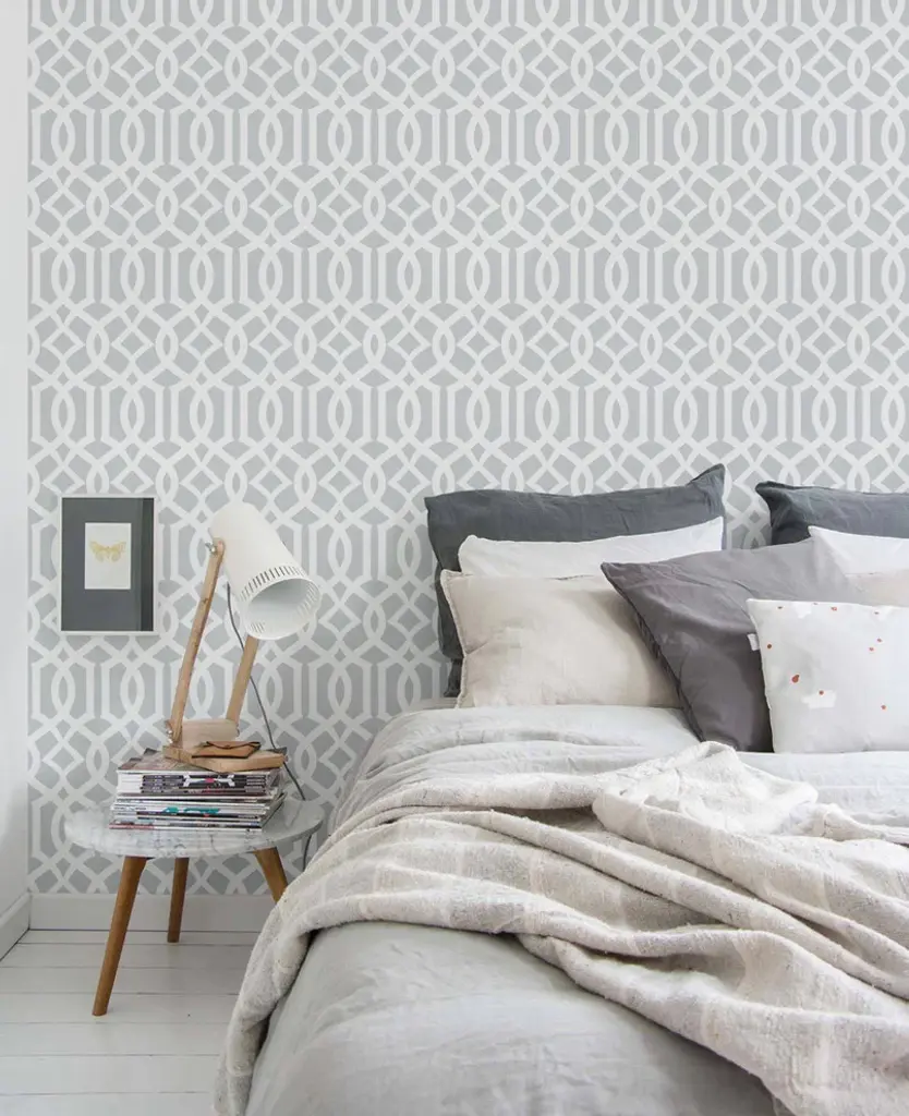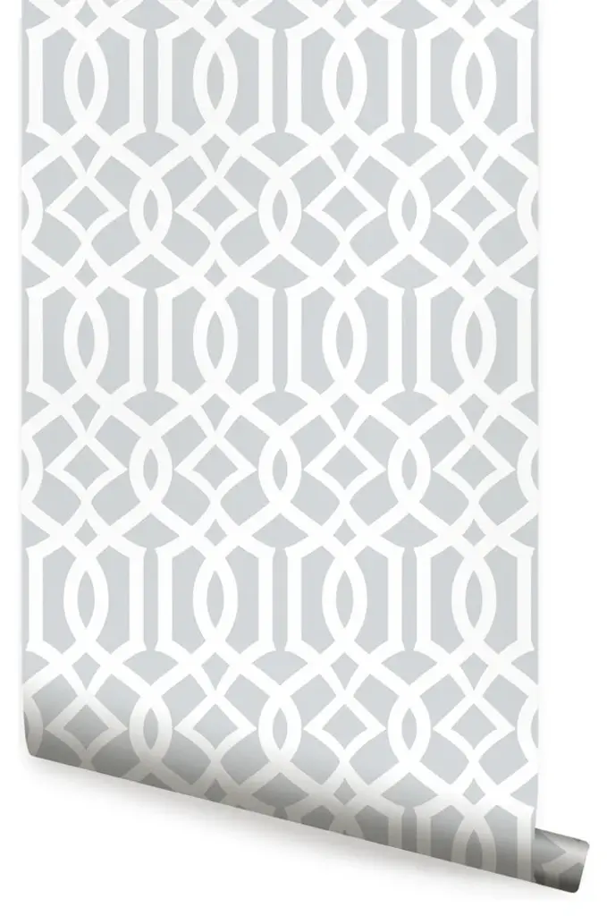 Modern Trellis Peel And Stick Vinyl Wallpaper, Light Cool Grey, 24"w X 60"h