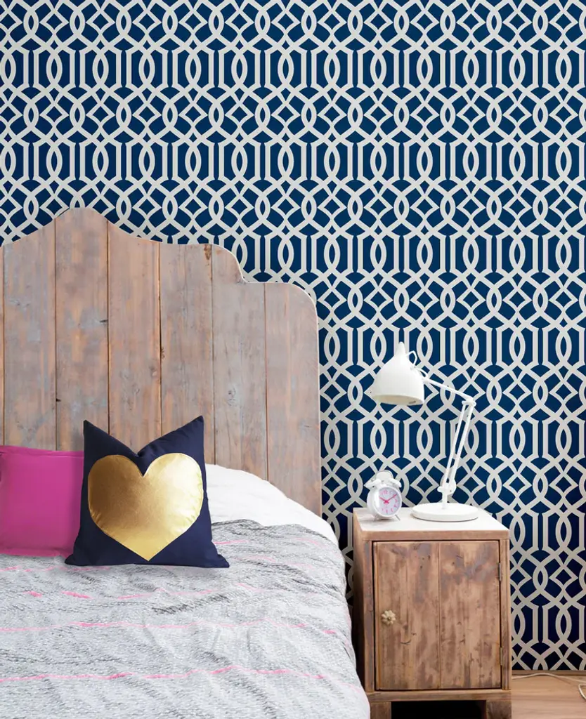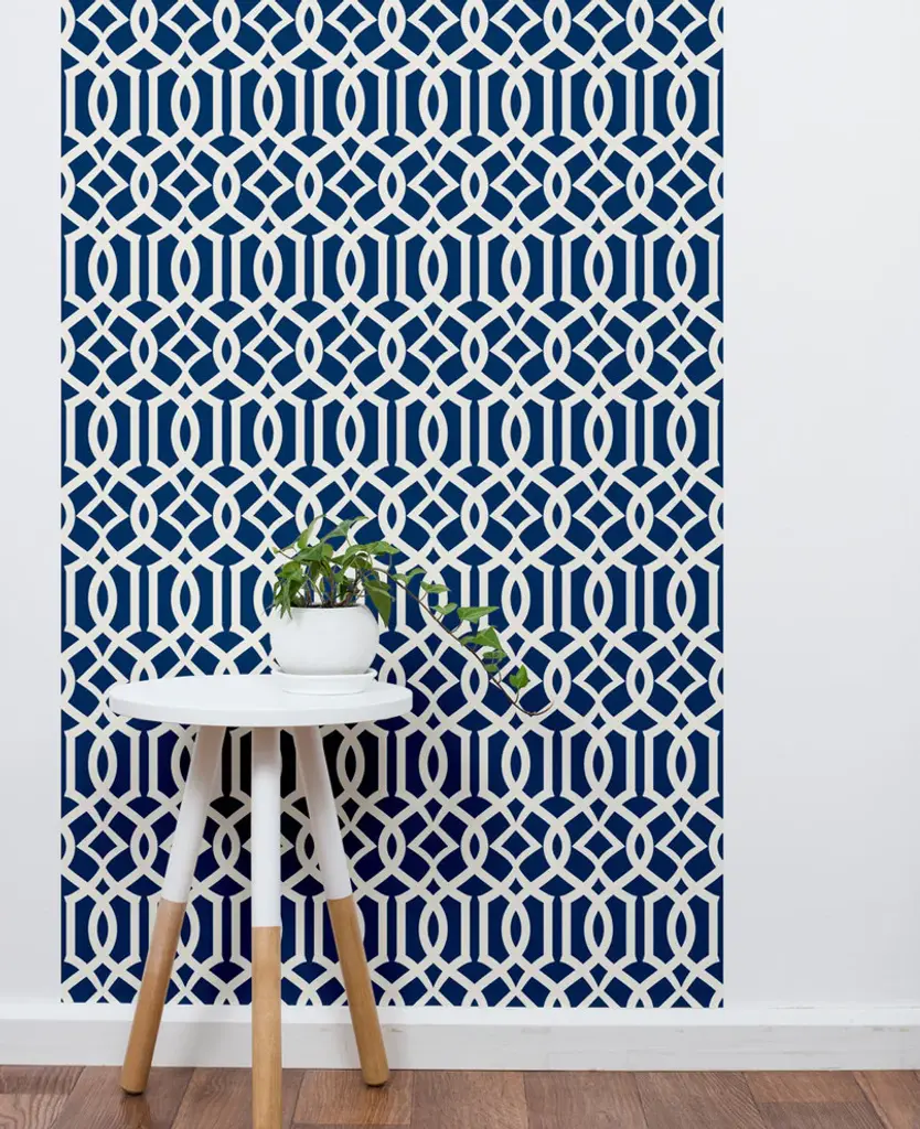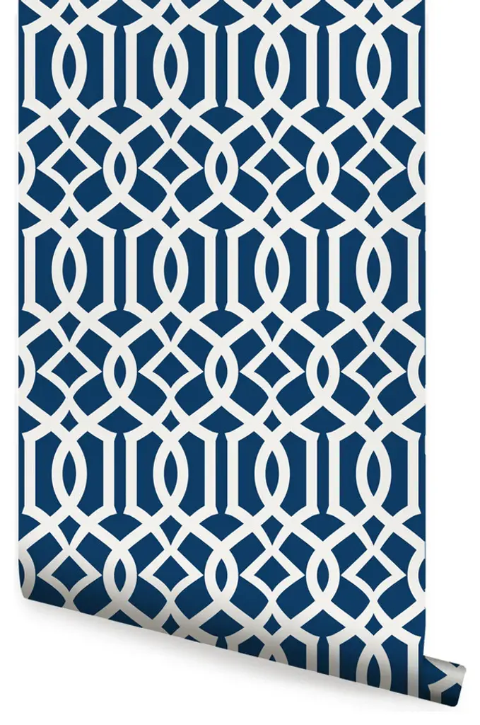 Modern Trellis Peel And Stick Vinyl Wallpaper, Navy, 24"w X 60"h