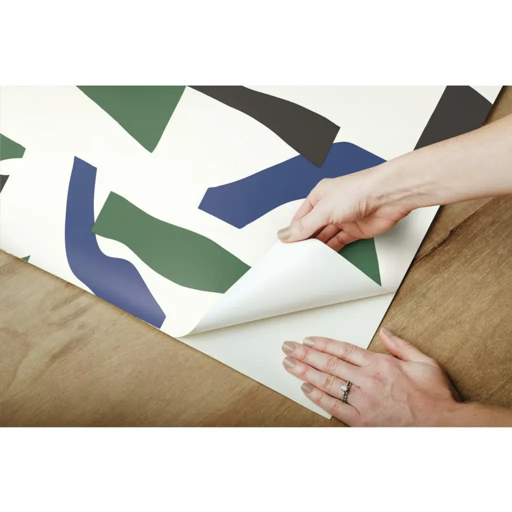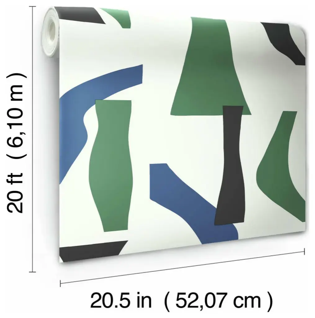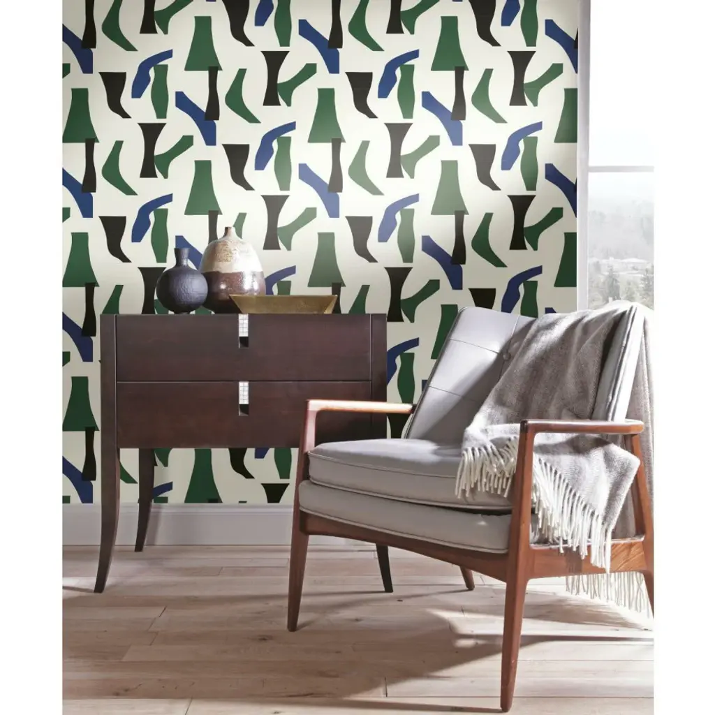 This product is a superior luxury non-woven peel and stick wallpaper, which removes easily in full strips without damage to surfaces. Colorful, deconstructed sculptural shapes bring a fresh perspective to artistic form in this Modernist wallpaper. Includes 1 roll - 20.5 in x 20 ft = 34.17 sq ft with a drop match and 24 in repeat.