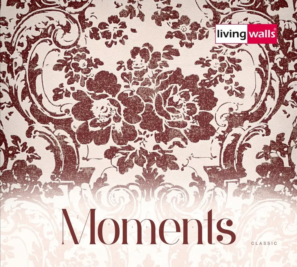 Wallpapers for special moments - the Moments wallpapers from A.S. Creation will enchant you with classic Baroque motifs as well as modern interpretations of flowers and garlands. Playful ornamentation in a vintage look and a lively surface structure create a stylish and elegant atmosphere. Exciting metallic effects make this wall decoration a stylish design element. For modern rooms, the refined floral garlands and the stylised flowers with tinsel provide the perfect foundation for young living. The graphic designs create a harmonious effect that makes time stand still for a moment. The sensual yet fresh appeal of the expressive wallpaper motifs is underlined by refined colour contrasts such as Bordeaux red, azure blue, and beige cream.