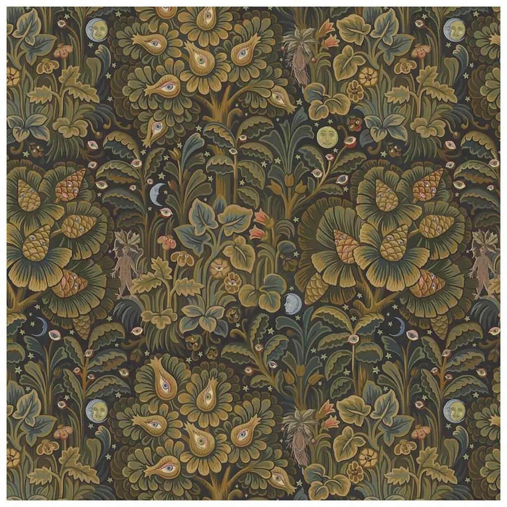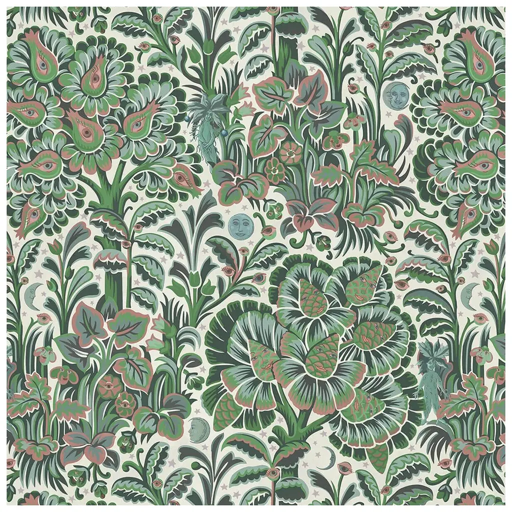 Dance under the stars and frolic in the moonlight with the mandrakes in MOON GARDEN. This wallpaper is a garden of earthly delights, featuring verdant plants, swirling trees, fantastical creatures and the four phases of the moon, under which the garden comes alive. Bring the magic home with this enchanting print.Our wallpaper is made using Forest Stewardship Council (FSC) certified, purposely grown materials, printed with water-based, environmentally safe inks, is PVC-free and made especially to order, reducing waste.Each roll of wallpaper sold enables House of Hackney to purchase and protect 35 square metres of forest thanks to our partnership with the World Land Trust, the international conservation charity that safeguards our most vital natural ecosystems and threatened habitats, acre by acre.