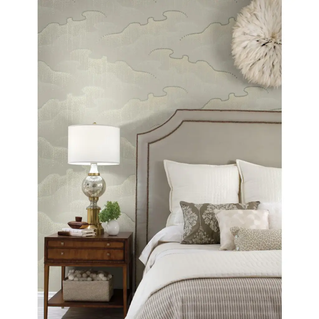 Designer Candice Olson�s?exceptional?design signature?continues?to reflect?the?breathtaking?color,�elegance?and patterns?of?the natural world in this second edition of?her?best-selling fine wallcoverings?collection?Modern Nature.???� Durable and easy to remove from primed walls, this friendly to hang unpasted nonwoven wallpaper is created with a special blend of synthetic fibers, making it both easy to hang and tear resistant.A cosmic, metallic ribbon creates a waterfall of shimmering stars in pattern Moonlight Pearls. Includes 1 roll - 27 in x 27 ft = 60.75 sq ft with a straight match and 25.25 in. repeat.