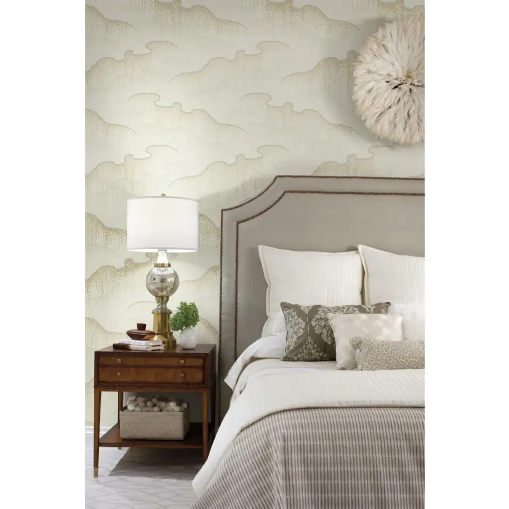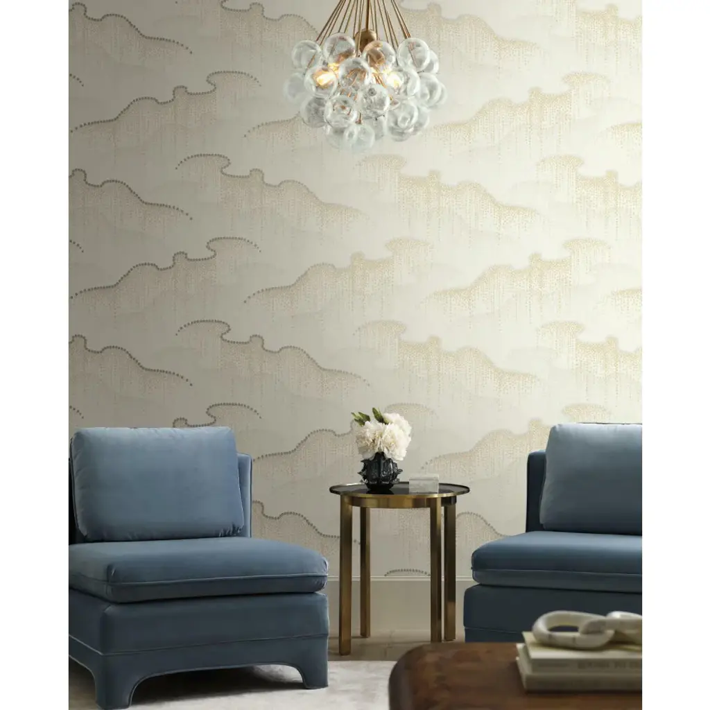 Designer Candice Olson�s?exceptional?design signature?continues?to reflect?the?breathtaking?color,�elegance?and patterns?of?the natural world in this second edition of?her?best-selling fine wallcoverings?collection?Modern Nature.???� Durable and easy to remove from primed walls, this friendly to hang unpasted nonwoven wallpaper is created with a special blend of synthetic fibers, making it both easy to hang and tear resistant.A cosmic, metallic ribbon creates a waterfall of shimmering stars in pattern Moonlight Pearls. Includes 1 roll - 27 in x 27 ft = 60.75 sq ft with a straight match and 25.25 in. repeat.