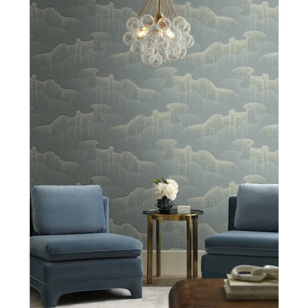 Designer Candice Olson�s?exceptional?design signature?continues?to reflect?the?breathtaking?color,�elegance?and patterns?of?the natural world in this second edition of?her?best-selling fine wallcoverings?collection?Modern Nature.???� Durable and easy to remove from primed walls, this friendly to hang unpasted nonwoven wallpaper is created with a special blend of synthetic fibers, making it both easy to hang and tear resistant.A cosmic, metallic ribbon creates a waterfall of shimmering stars in pattern Moonlight Pearls. Includes 1 roll - 27 in x 27 ft = 60.75 sq ft with a straight match and 25.25 in. repeat.