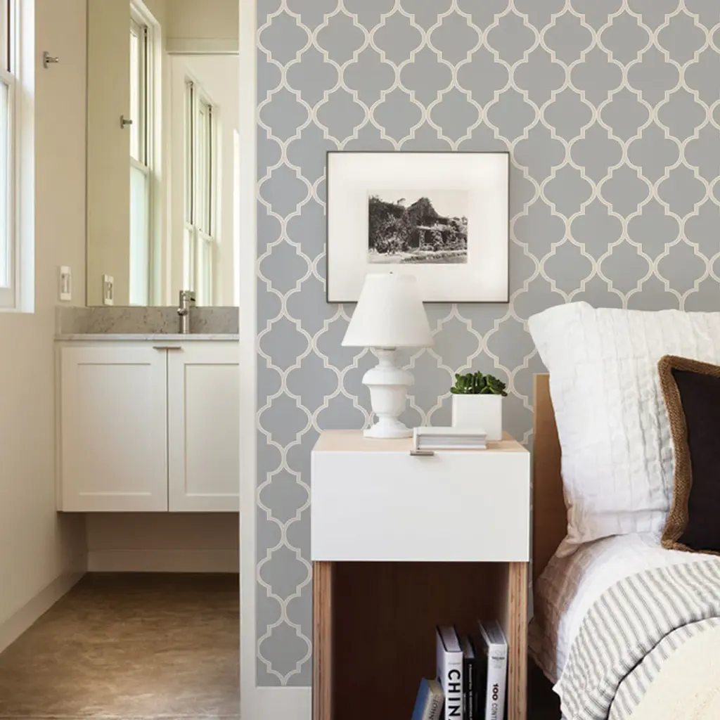 Moroccan Peel And Stick Vinyl Wallpaper, Cool Light Gray, 24"x108"
