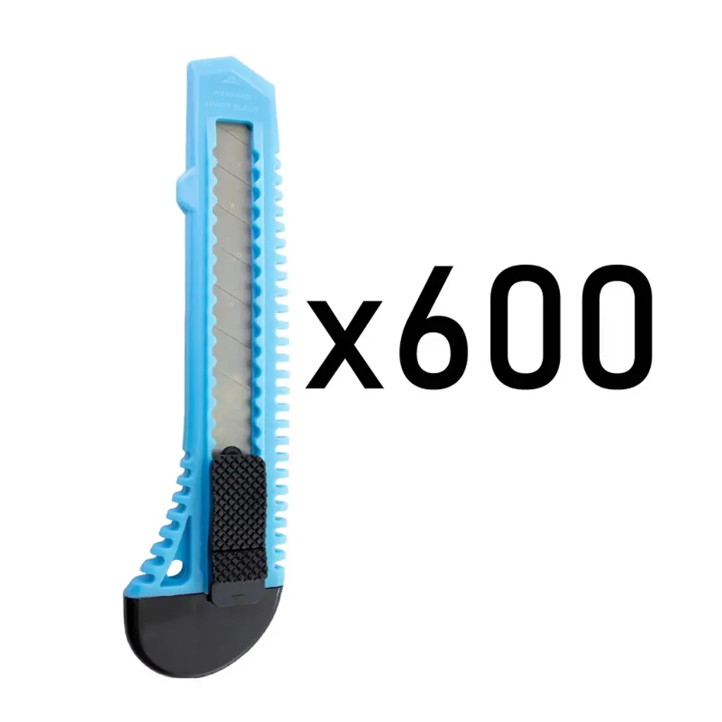 Our utility knife retractable box cutter is an excellent addition to any home, toolbox, or junk drawer. Whether you're opening a package or slicing through something tough, these crafting supplies are the perfect tool for the job. It uses a removable razor blade to cut, so the edge is both razor-sharp and disposable. Ideal for all of the grunt-work cutting jobs that are too difficult for scissors and too dulling and damaging for a nice pocket knife. Think of it as a lighter version of the box cutter, only stronger and can cut tougher materials. With this breakaway snap-off box cutter, a new point and sharp edge are always just a snap away. This retractable craftsman utility knife has a durable plastic body and segmented blades that snap off. This keeps the blades sharp for precise cutting and saves you a lot of time on your projects because you can just snap off the blade between uses. Simply use the cutter's detachable black end to snap off the blade. Great for cutting paper, wallpaper, contact paper, cardboard, vinyl, carpet, twine, and other materials. It's the perfect tool to always have on hand at home, in the garage, in the office, or in the warehouse. The blade can also be replaced. Simply push the button to the top, pull off the used blade, then push the button back to the bottom, then push up, and the blade will self-reload. The case is made of soft TPR material with an ergonomic finish that makes it easy to hold and makes it easier to work for long periods of time. Ideal for everyday use and craft projects. So, if you're looking for a cutter that can handle anything you throw at it, then our utility knife cutter is the perfect choice. NOTE: Each order is for SIX HUNDRED (600) knives.