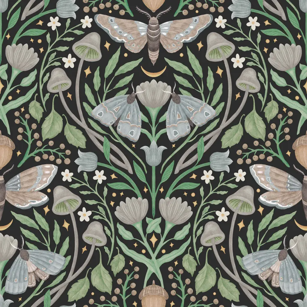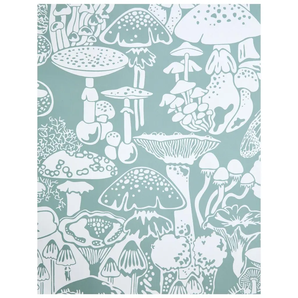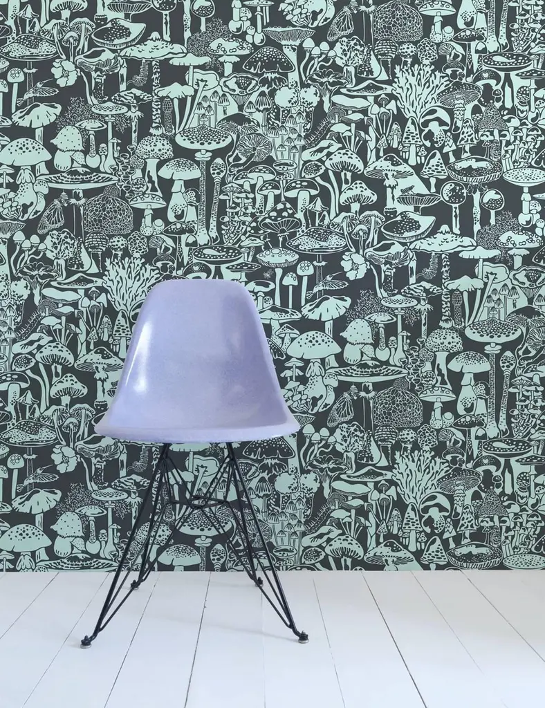 Mushroom City Designer Wallpaper In Mint-Chip 'Mint On Charcoal'