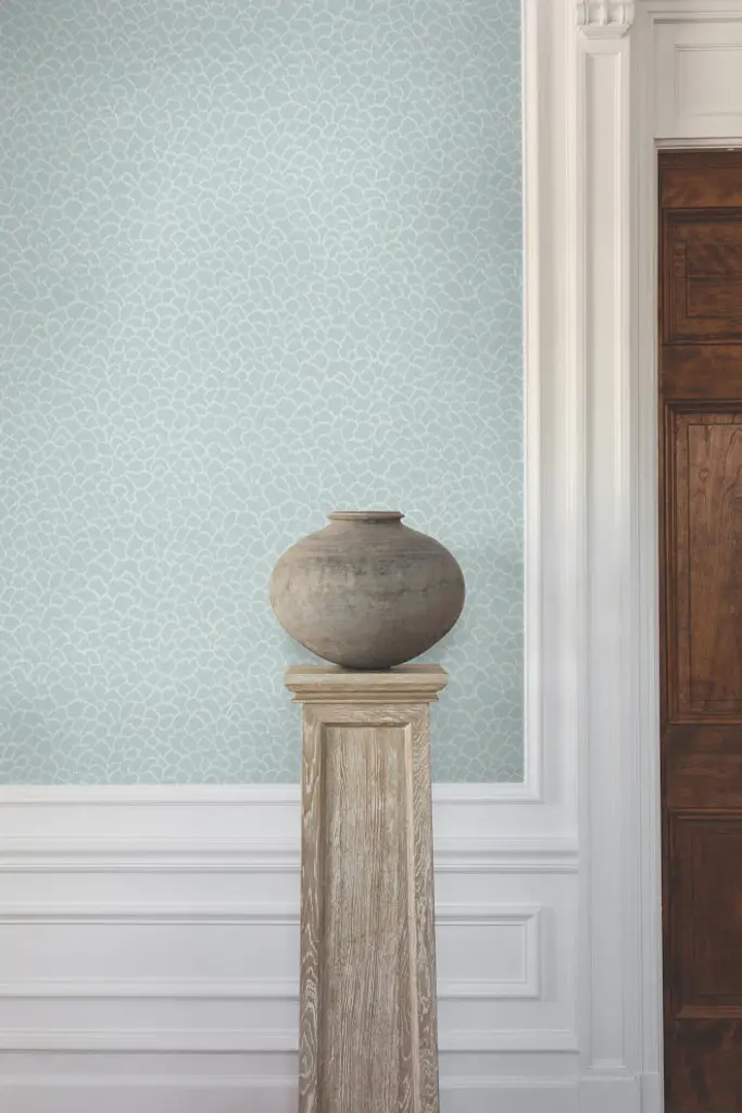 The wildlife and underbrush of the African savanna inspire Nadie''s organic textural abstract pattern, shown here in powder blue with white. This Nadie Wallpaper measures approximately 27 inches wide by 27 feet long, measuring approximately 60.8 square feet per roll. The distinction of timeless style. Unpasted non woven material. 25.25-in repeat, straight match. Washable and strippable. 27-in by 27-ft long roll. Covers about 60.8 square feet