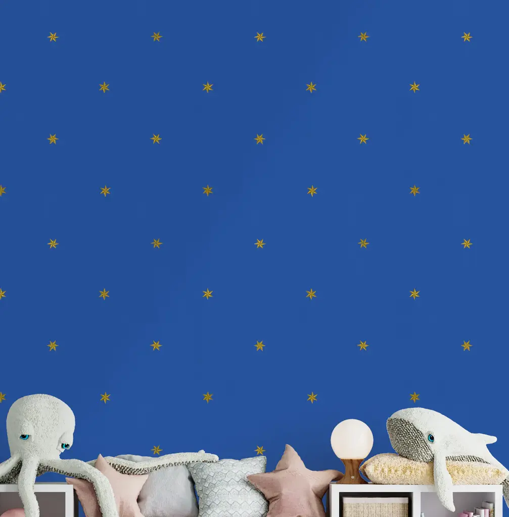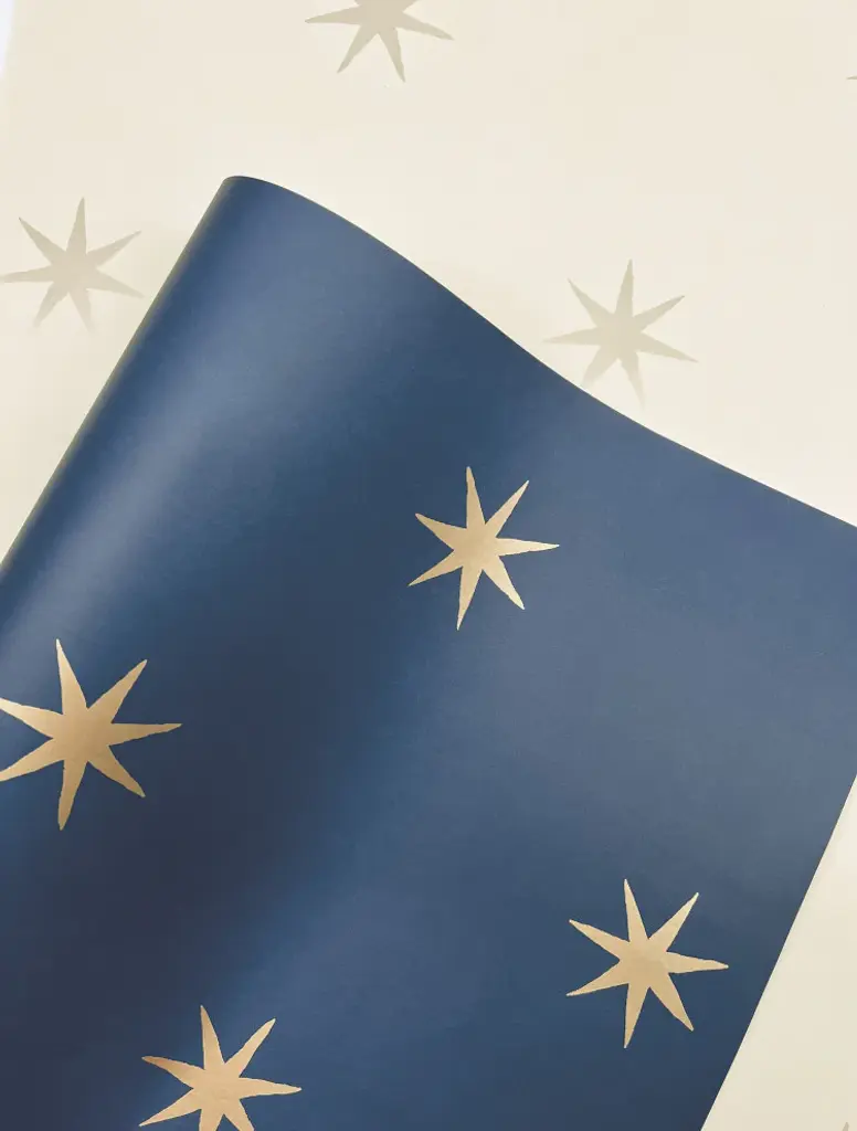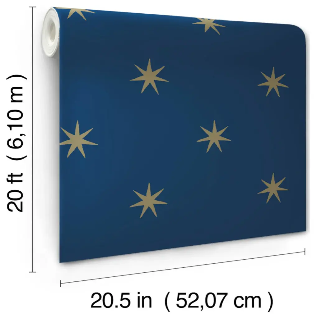 Navy & Metallic Gold Star Splendor Peel & Stick Wallpaper