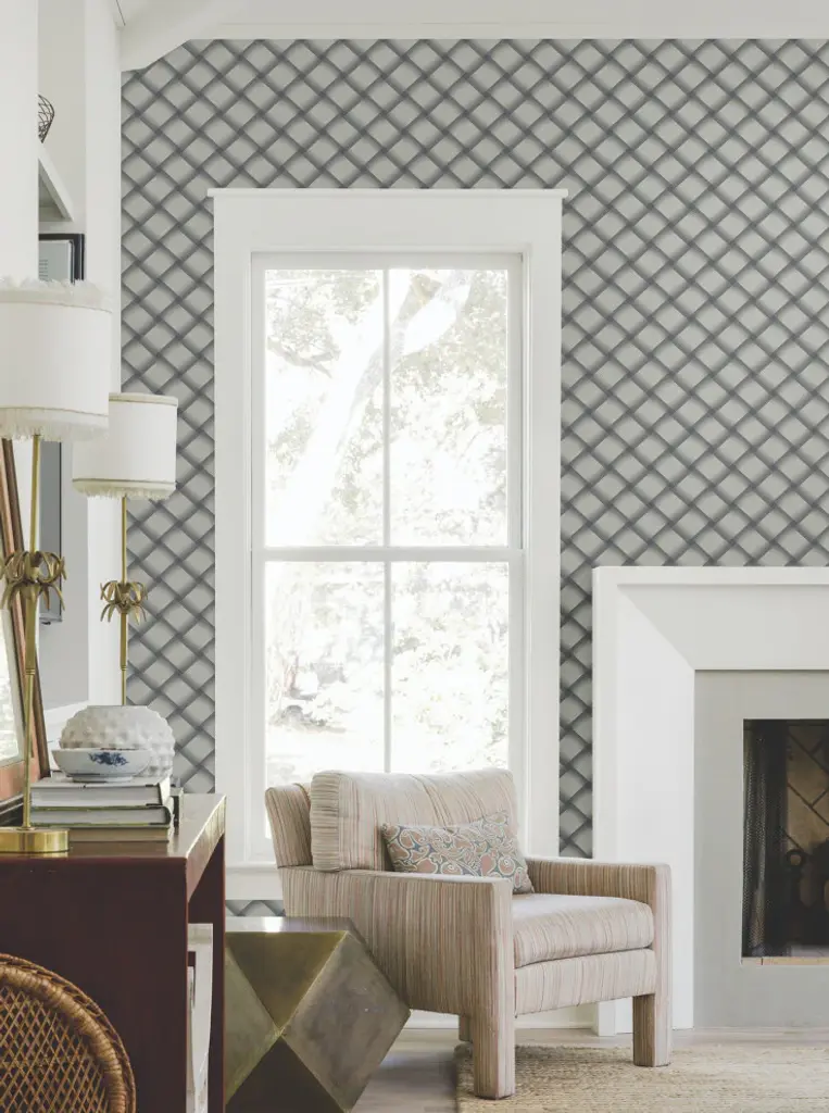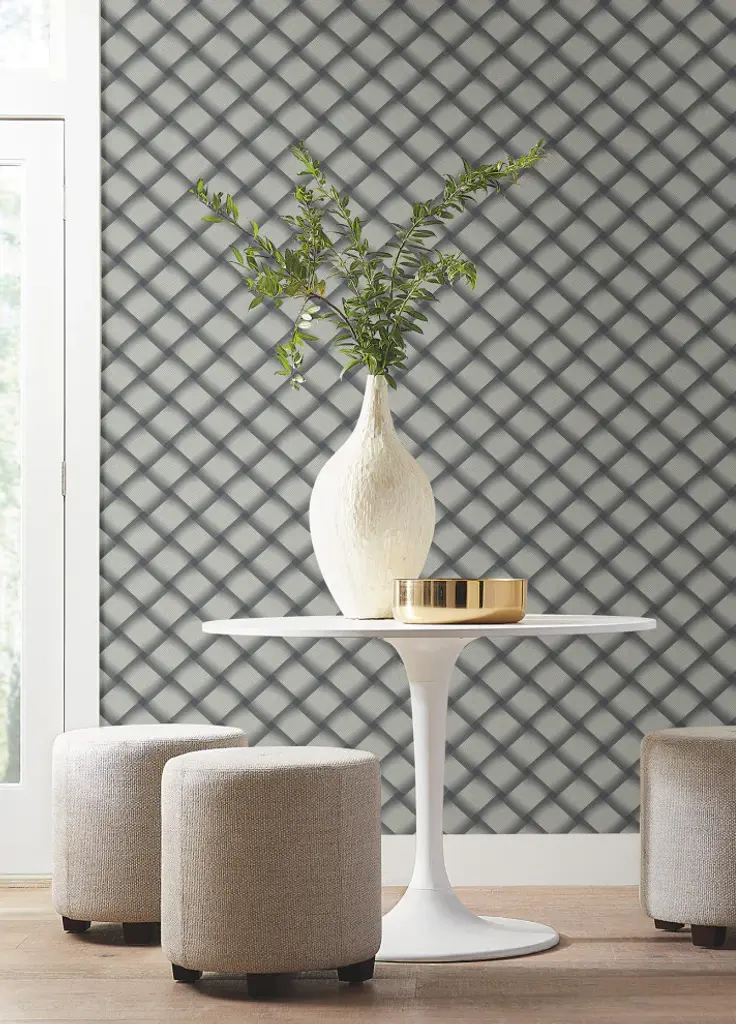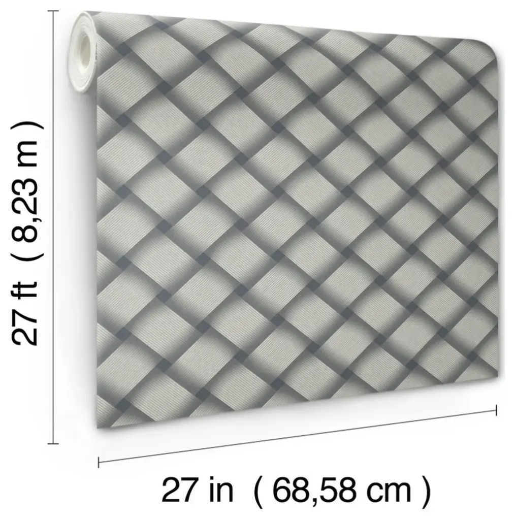 A fresh take on an organic classic, the large-scale plaiting of Bayside Basket Weave becomes strips of shaded, dimensional grey-and-white pinstriping offset by rich blue. This Bayside Basket Weave Wallpaper measures approximately 27 inches wide by 27 feet long, measuring approximately 60.8 square feet per roll. Organic simplicity and lustrous adornment for the modern home. Unpasted non woven material20.5-in repeat, straight matchWashable and strippable27-in by 27-ft long rollCovers about 60.8 square feet