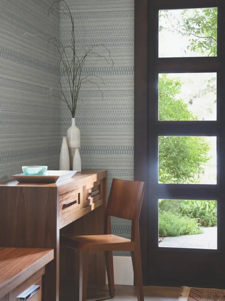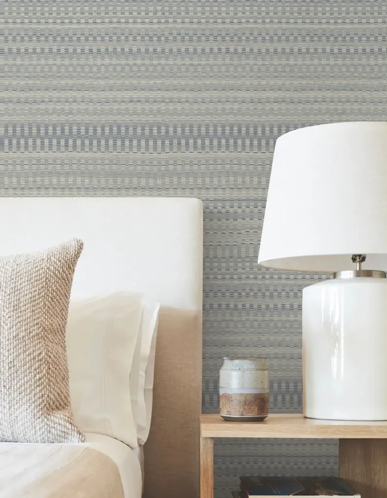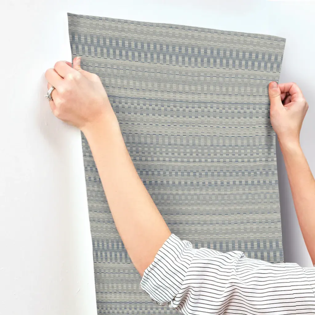 The decorative raised Tapestry Stitch is the cornerstone of hand-loomed textile wall art, synonymous with classic luxury and artisanal craftsmanship, shown in navy on woolen gray. This Tapestry Stitch Wallpaper measures approximately 27 inches wide by 27 feet long, measuring approximately 60.8 square feet per roll. The modern aesthetic of natural form. Unpasted non woven material25.25-in repeat, straight matchWashable and strippable27-in by 27-ft long rollCovers about 60.8 square feet