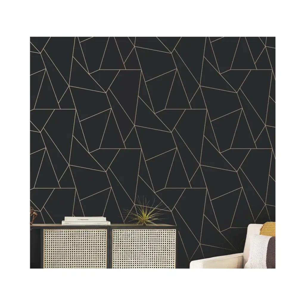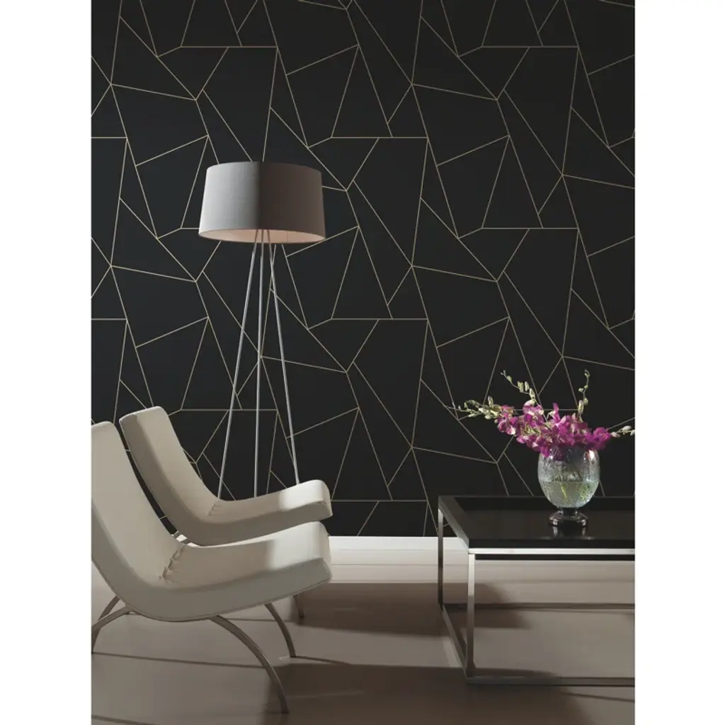 Fractured metallic lines create a contemporary geometric of irregular lines and angles in the Nazca pattern, shown in a neutral beige mix with nickel metallic. This Nazca Wallpaper measures approximately 20.8 inches wide by 33 feet long, measuring approximately 57.2 square feet per roll. The long awaited follow-up to the popular first release, Modern Metals Second Edition energizes contemporary spaces with charismatic visual artistry defined by the allure of luminous metallic.