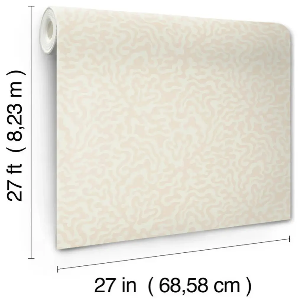 Intertwining curls of cream and beige offer abstracted entanglement in Nebulous Cloud. This Nebulous Cloud Wallpaper measures approximately 27 inches wide by 27 feet long, measuring approximately 60.8 square feet per roll. Artistic experimentation with the interplay of form, color and texture has led to an avant-garde reimagining of familiar design motifs. Unpasted non woven material; 12.625-in repeat, straight match; Washable and strippable; 27-in by 27-ft long roll; Covers about 60.8 square feet