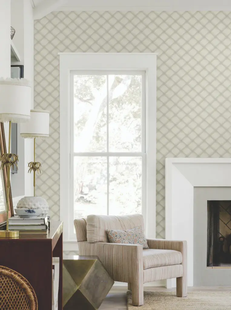 A fresh take on an organic classic, the large-scale plaiting of Bayside Basket Weave becomes strips of shaded, dimensional taupe-and-cream pinstriping offset by grey. This Bayside Basket Weave Wallpaper measures approximately 27 inches wide by 27 feet long, measuring approximately 60.8 square feet per roll. Organic simplicity and lustrous adornment for the modern home. Unpasted non woven material20.5-in repeat, straight matchWashable and strippable27-in by 27-ft long rollCovers about 60.8 square feet