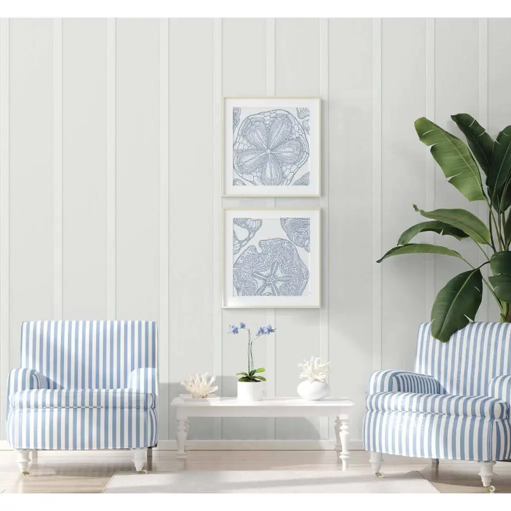 Add an instant coastal charm to your next home decor project with this faux Board and Batten peel and stick wallpaper pattern from NextWall. Printed on smooth vinyl, our self-adhesive designs are perfect for renters and homeowners looking for an instant, DIY transformation to their interior space. With the same qualities and durability as permanent wallpaper, our products offer an easy, fresh alternative to decorating with very little commitment. No water, no mess, no sticky residue.