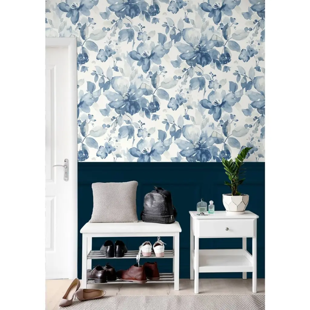 Nextwall Bluestone Watercolor Flower Peel And Stick Wallpaper