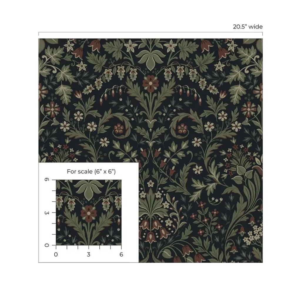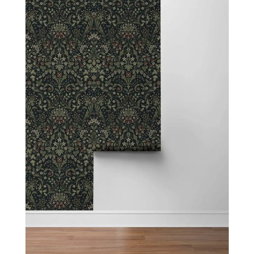 Nextwall Midnight Blue And Sage Filigree Floral Peel And Stick Wallpaper