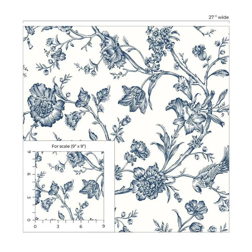 Nextwall Navy Blue Jasmine Chinoiserie Peel And Stick Wallpaper