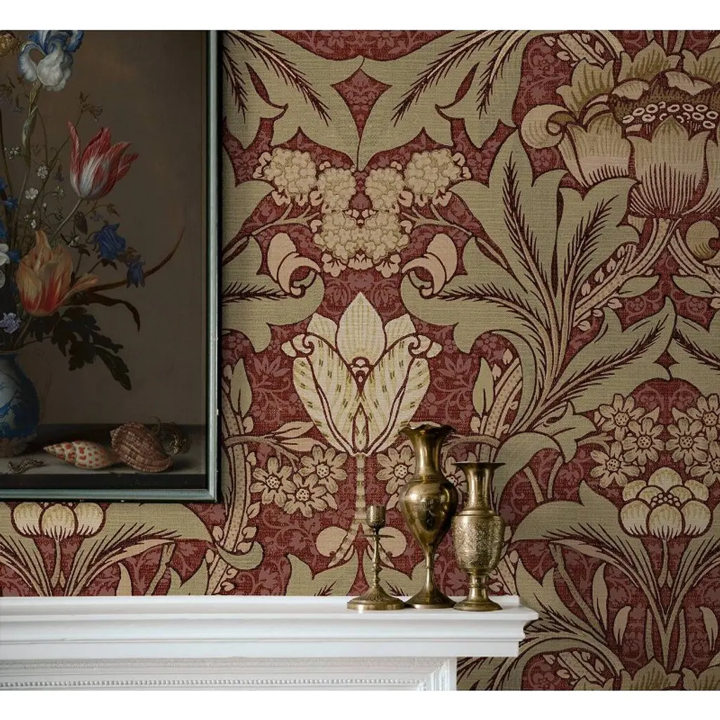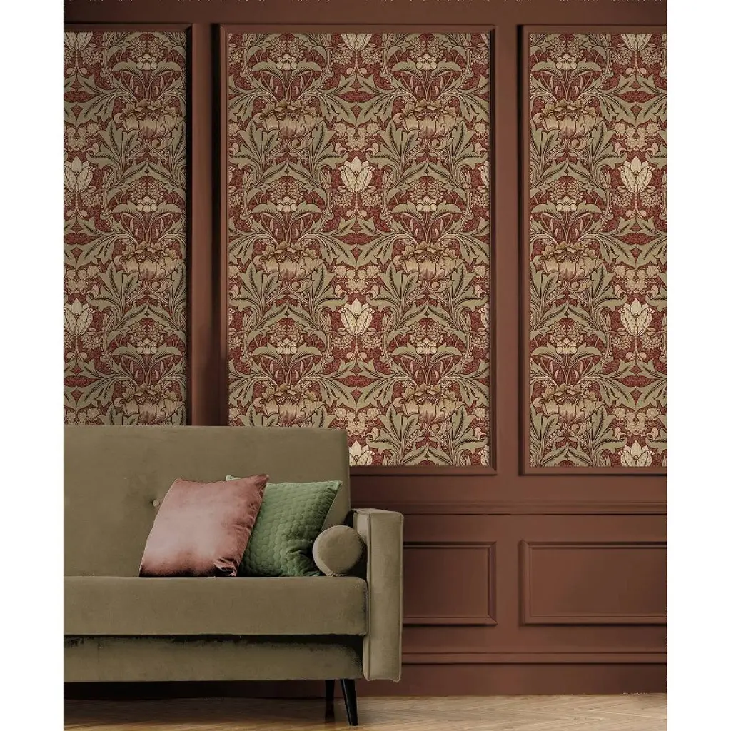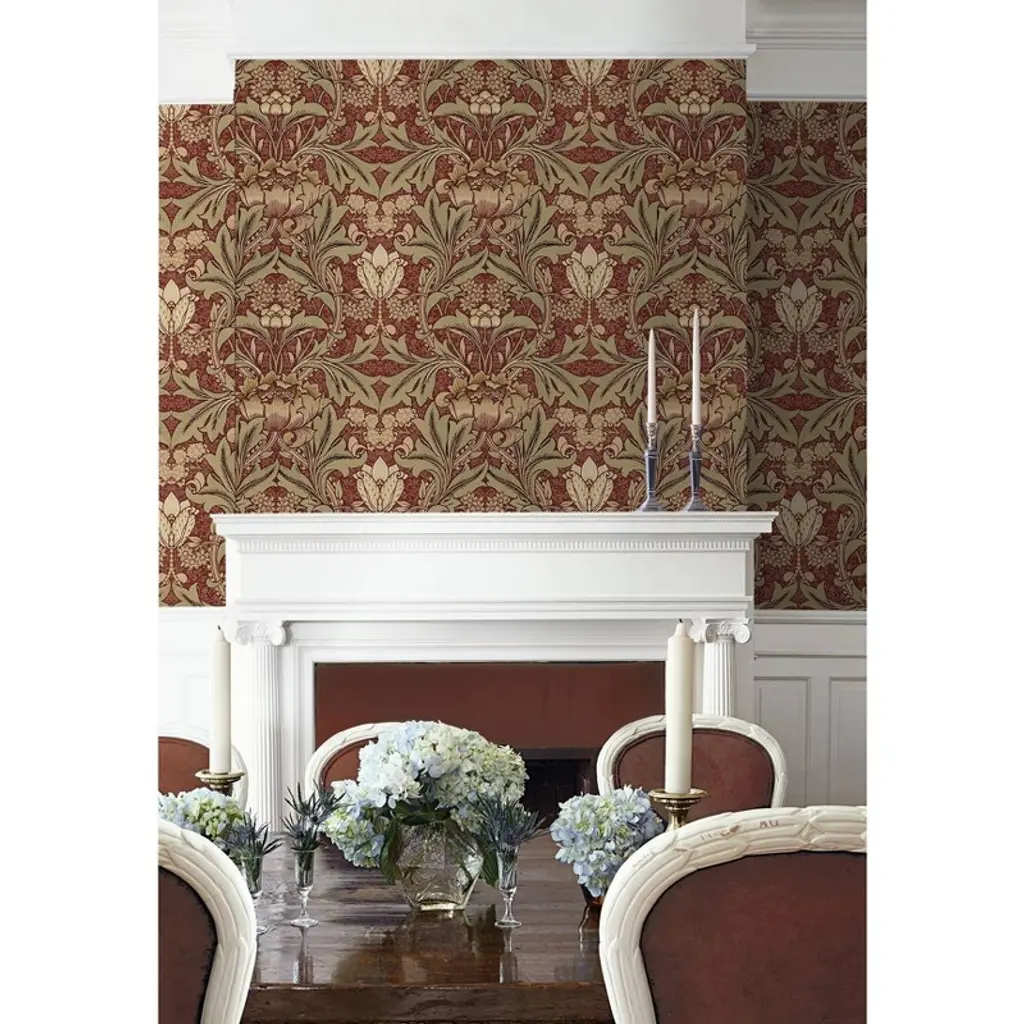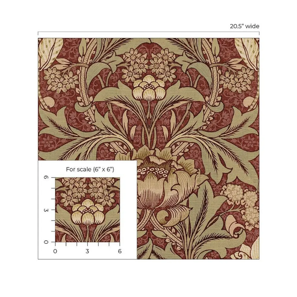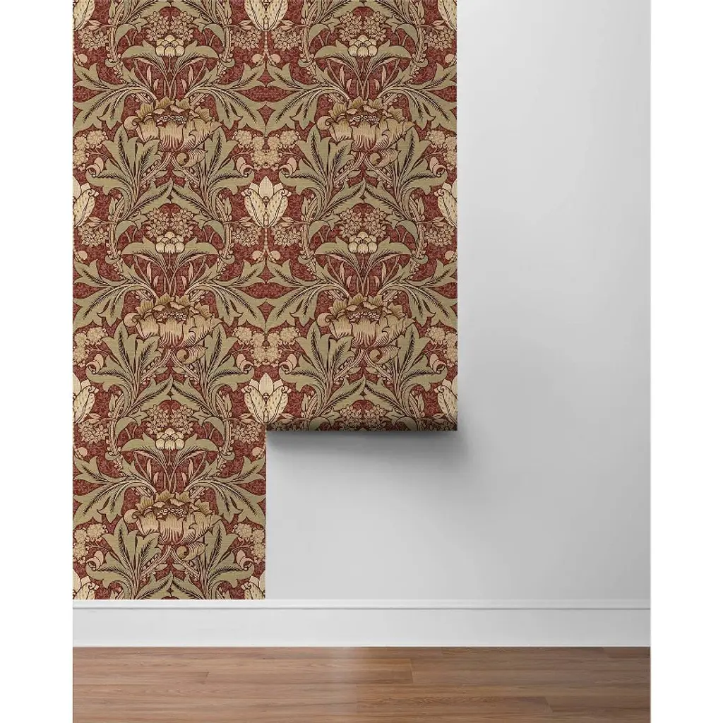 Nextwall Red Clay And Lichen Acanthus Floral Peel And Stick Wallpaper