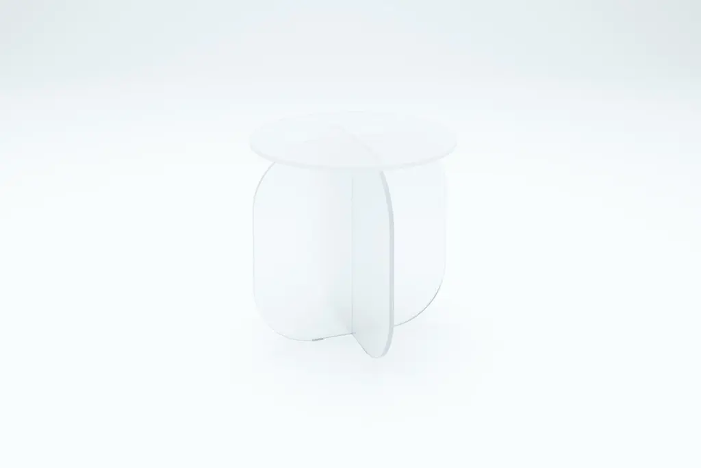 Nor Satin glass side table, Sebastian SchererDimensions: ø 50 x 50 cmMaterials: Satin glassThe NEO/CRAFT label was founded by the Berlin-based designer Sebastian Scherer after he won the Lexus Design Award 2014 for his Iris lamp (2013). The debut collection, which consisted of ten products, was first presented at the imm cologne in January 2015 in what Wallpaper Magazine described as “one of the most impressive debuts in 2015.” Exhibitions at trade fairs in Milan and London followed this same year. Since then, Sebastian Scherer has worked as a designer and creative director in equal measure. The collection consists of his designs, but these can also undergo further development in the future through the input of other designers. The central element in his developmental process is the continual search for new creative possibilities with classical materials such as aluminum, steel, glass and wood.