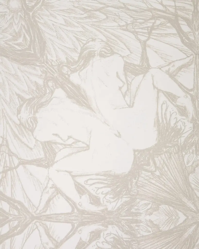 Nymph Screen Printed Wallpaper In Snow Stone White