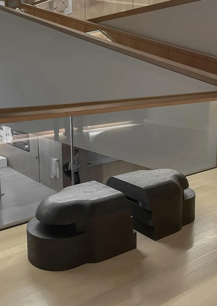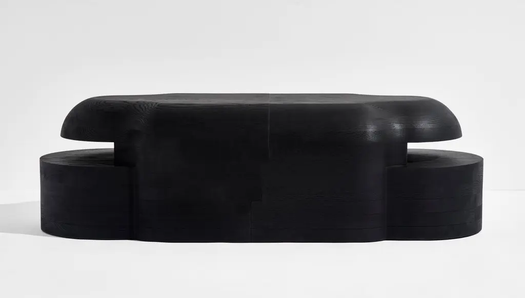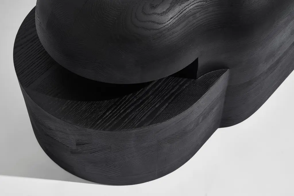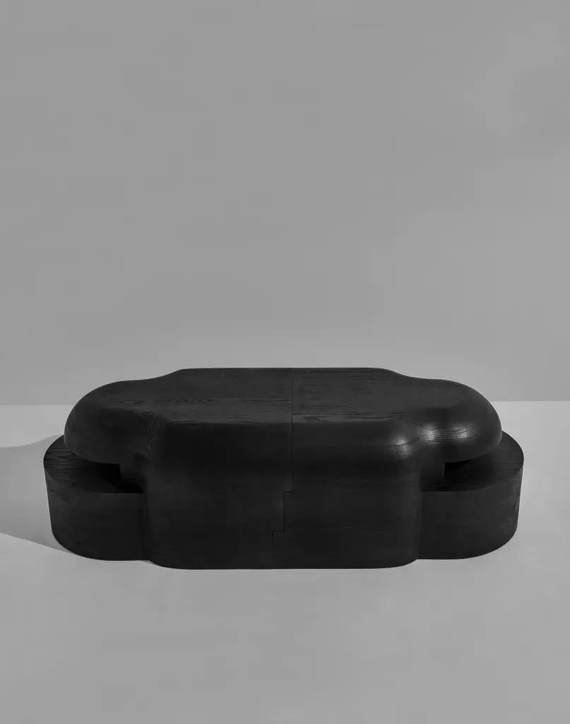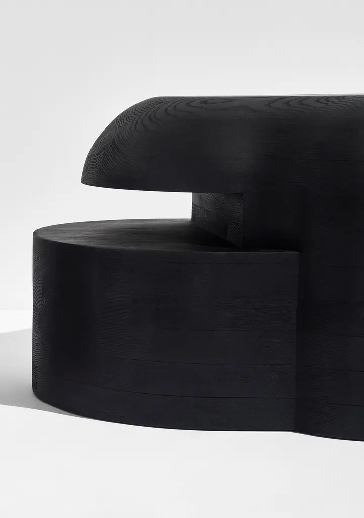 Oak Lahmu X stool by Sizar AlexisLimited edition of 10 piecesDimensions: D 70 x W 90 x H 50 cmMaterials: Burned American oak.Available in natural cherry, natural oak, or burned oak.When me and my wife got home from the maternity ward in april 2020, we made sure that we were protected from the pandemic and isolated ourselves from everyone, even our families, to protect our newborn son. With the core values of the Discovered project, touch, reflection and strength in mind, I reflected that our apartment was functioning like a bunker in that period of isolation, protecting ourselves from the outside world and from that I got the idea to make a bunker inspired furniture that would represent the emotional connection to these thoughts. My association with bunkers comes from the war in Iraq when me and my family protected ourselves in a room functioning as a bunker in our home. An experience that many still have, to protect themselves from a visible enemy and now we found ourselves fighting an invisible one today. Drawing from the similarities in experiences between my own childhood where there was a visible enemy to be protected from and my young sons where there was an invisible one. I then made two sculptural pieces of furniture to represent these two worlds defined by strong monolithic forms and a sense of stillness. The sculptural pieces serve as a side table or stools and together as a bench or as a low sideboard, inspired by bunker architecture. I chose two contrasting woods: one half in American cherry, for its inherent warmth, and one half in red oak, its surface burned with the Japanese burning method called shou sugi ban. The name Lahmu comes from Mesopotamian mythology of a protective deity that was supposed to ward off demons and sickness. Discovered project was initiated by Wallpaper magazine & AHEC and exhibited in the Design Museum in London in september 2021.