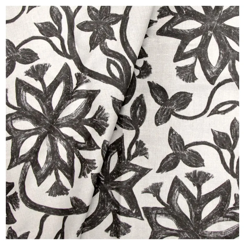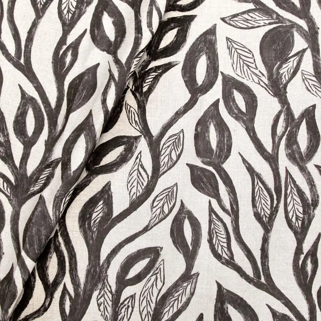 This collection takes its lead from the tribal villages of Hazaribagh in Northeastern India, where the walls of the villages’ mud homes are decorated with rambling, figurative murals. A canvas of dark charcoal earth is first laid down and left to dry, and then covered with a pale kaolin clay; before the top layer dries, women in the villages brush away the lighter earth with a broken comb or fingers to create lyrical silhouettes.The mural-painting is part of a matrimonial ritual for the women which takes place every spring during the marriage season. Fleeting in nature, each year the murals are washed away with the heavy monsoon rains – and then once again started anew.Drawn to the exaggerated scale and the boldness of the Khovar designs, we commissioned women in the villages to do three paintings for us (leaf, vine, flower) – which we have translated into a collection of fabrics and wallpapers.Our partners in this collection, the women from The Tribal Women Artists Cooperative (TWAC), receive a commission for each yard sold.Leadtime 2-3 weeks.DETAILSREPEAT DIMENSIONS26” h x 38.5” v66cm h x 98cm vWIDTH DIMENSIONS54”137cmMATERIALS100% heavyweight linenLEADTIME2-3 weeks