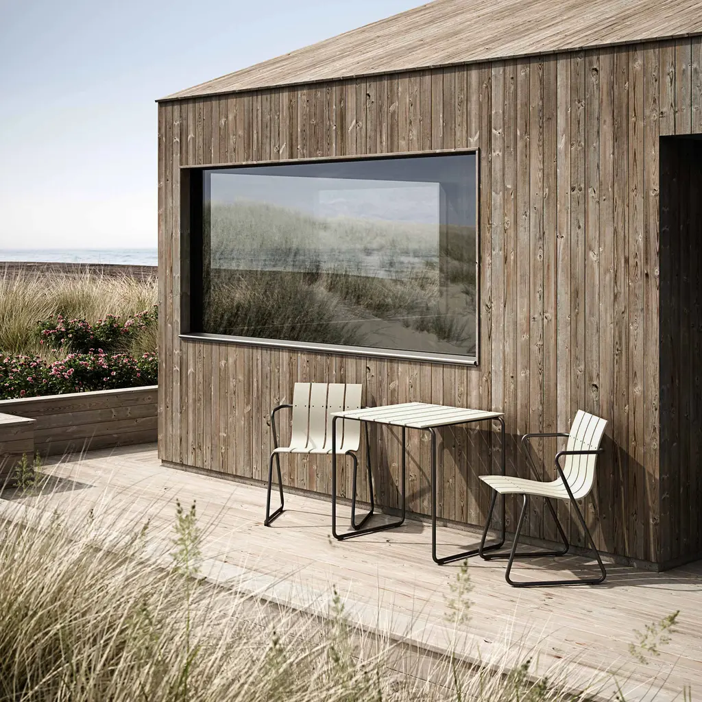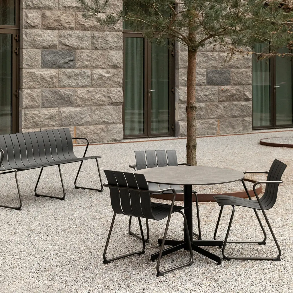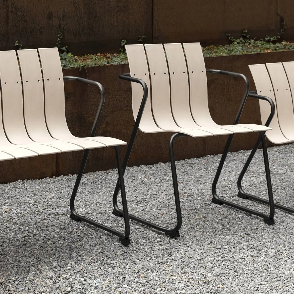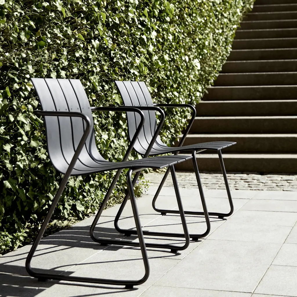 Introducing the Mater Ocean Chair: a sustainable reinvention of Nanna and Jørgen Ditzel’s classic 1955 design. Perfect for outdoor spaces, this stackable chair is crafted from 960 grams of ocean plastic waste, primarily repurposed fishnets. The slatted design, originally in wood veneer, now features recycled hard plastic in sleek black or sand hues. Complemented by a gunmetal-finished steel frame, the eco-conscious Ocean Chair has been recognized with a Wallpaper Design Award for its stylish appeal.