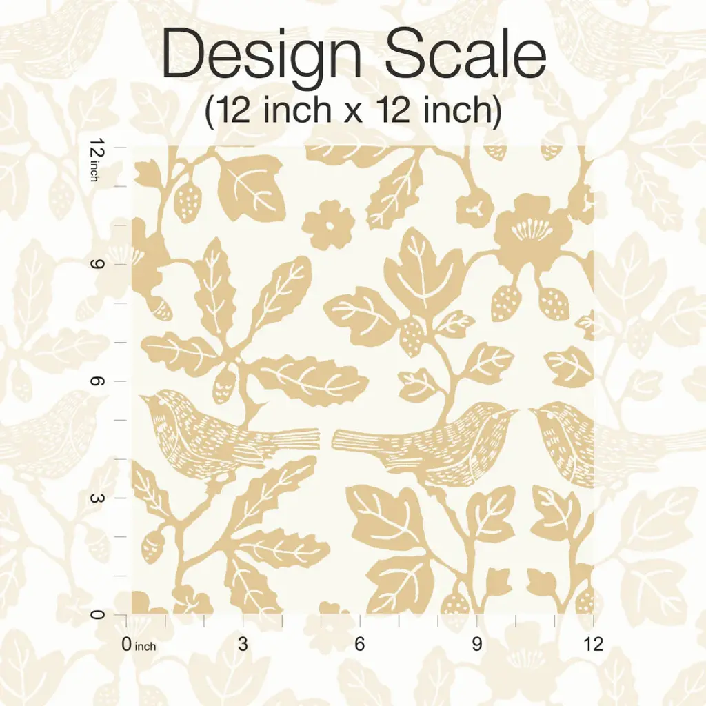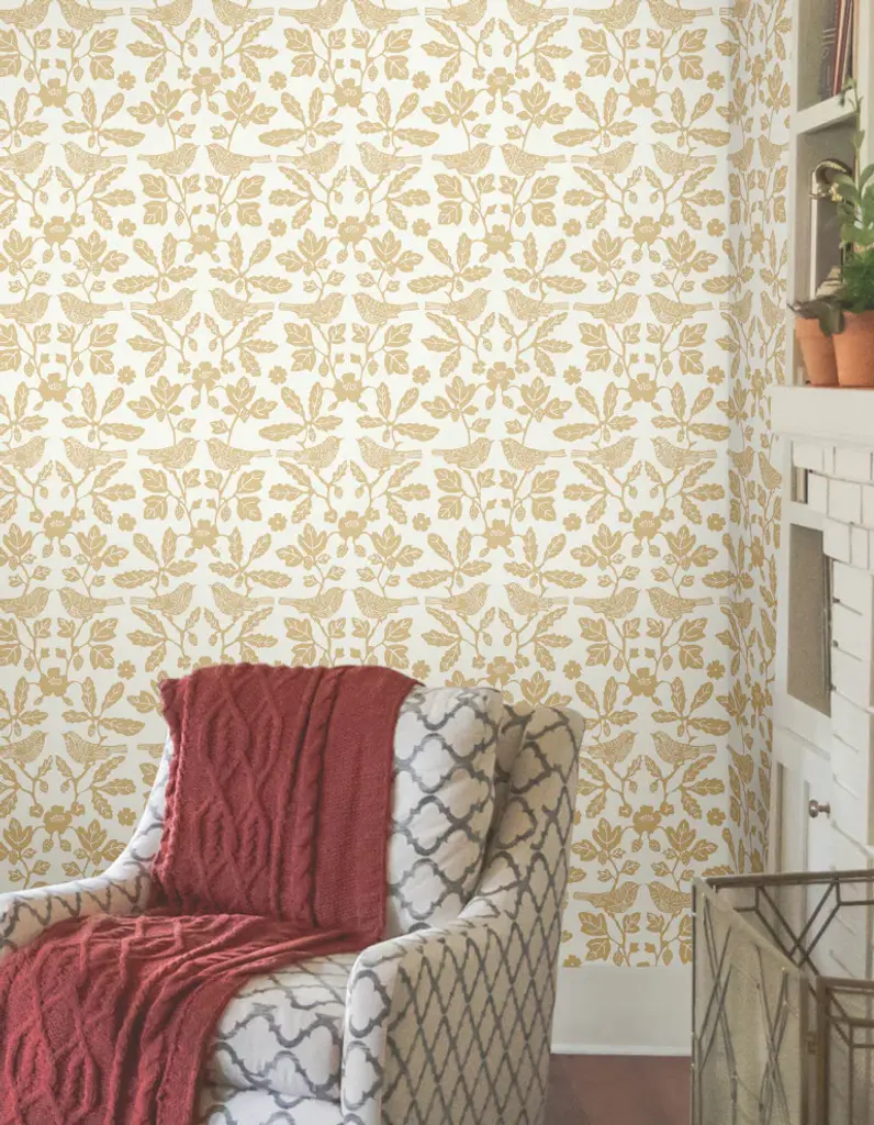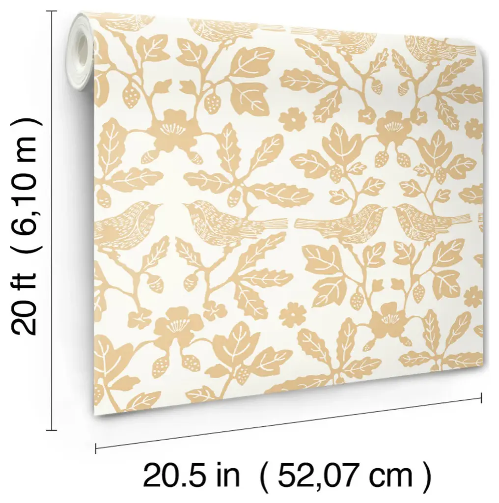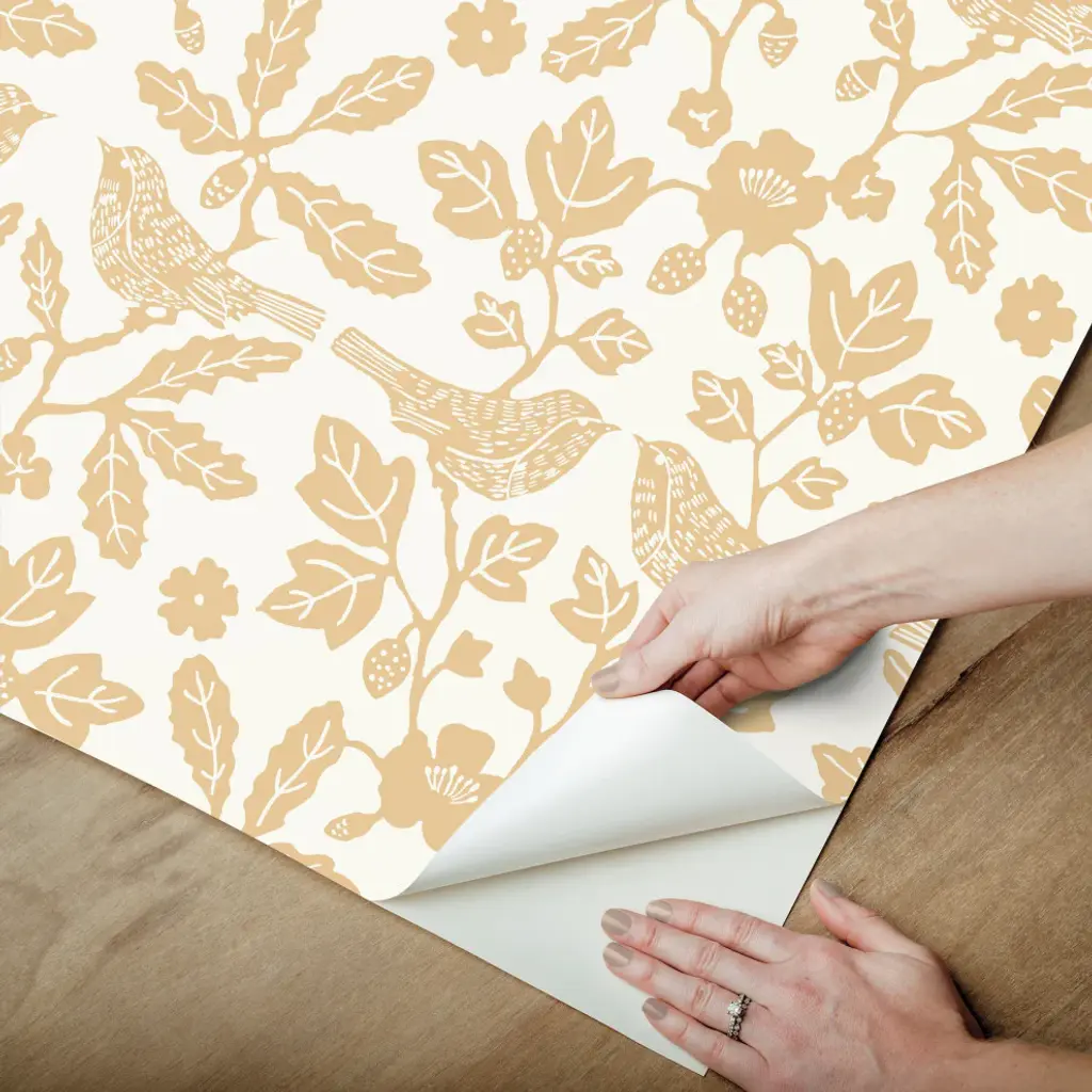 Ochre Yellow Sparrow & Oak Peel & Stick Wallpaper