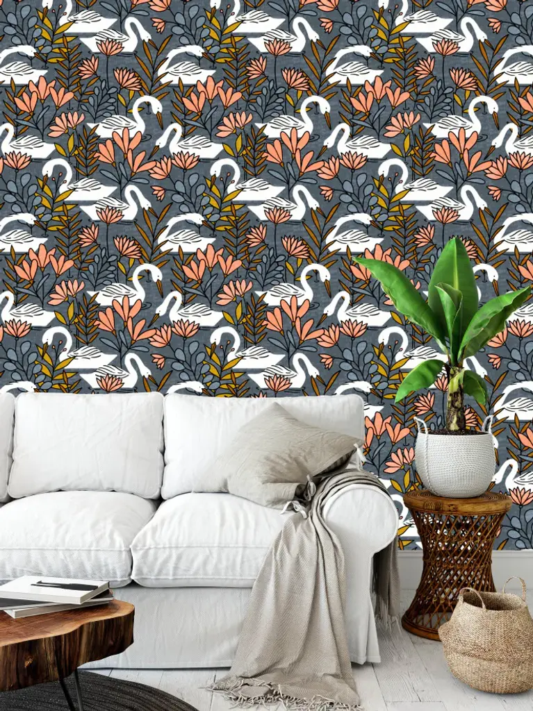 Each roll of wallpaper is custom printed to order and has a fixed width that covers 24 inches of wall space. Peel & Stick Fabric Wallpaper - Removable and Repositionable! Limitless Walls Fabric Peel and Stick wallpaper is a woven polyester fabric with an adhesive backing. Limitless Walls fabric is not like everyone else"™s, ours is the thickest most durable and easiest to install. You won"™t be able to find this anywhere else since we make it ourselves!• 100% opaque white polyester woven with adhesive backing• Eco-friendly and formaldehyde-, phthalate-, and PVC-free• To install, simply peel and stick• Easily removable and repositionable IMPORTANT NOTE Our wallpapers are not recommended for application over paints advertised as being stain-resistant or washable. These paints are crafted to prevent things from sticking -- including wallpaper. If in doubt, you can use Zinsser Gardz which is a clear primer that you can apply right over your current paint. If your wall has been recently painted, allow at least 2+ weeks for the paint to cure before applying wallpaper. Applying wallpaper over uncured paint can lead to bubbling. Our wallpaper will not stick to cement or textured walls.We highly recommend ordering a test swatch before committing to full rolls. While we have done our best to accurately represent the color and scale of this design, computer monitors aren''t the best way to determine how a printed color will look in person. It''s possible that the finished product may be slightly different than it appears in the preview. It is also important to test the adhesive on your unique surface.CARE INSTRUCTIONS:Gently wipe down with a damp cloth, soft cleaners such as dish soap can be used. The use of heavy cleaners or heavy rubbing can cause color to lift.Original Design by Amy MacCready.