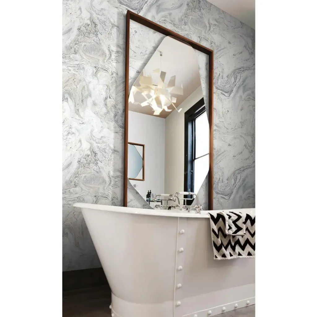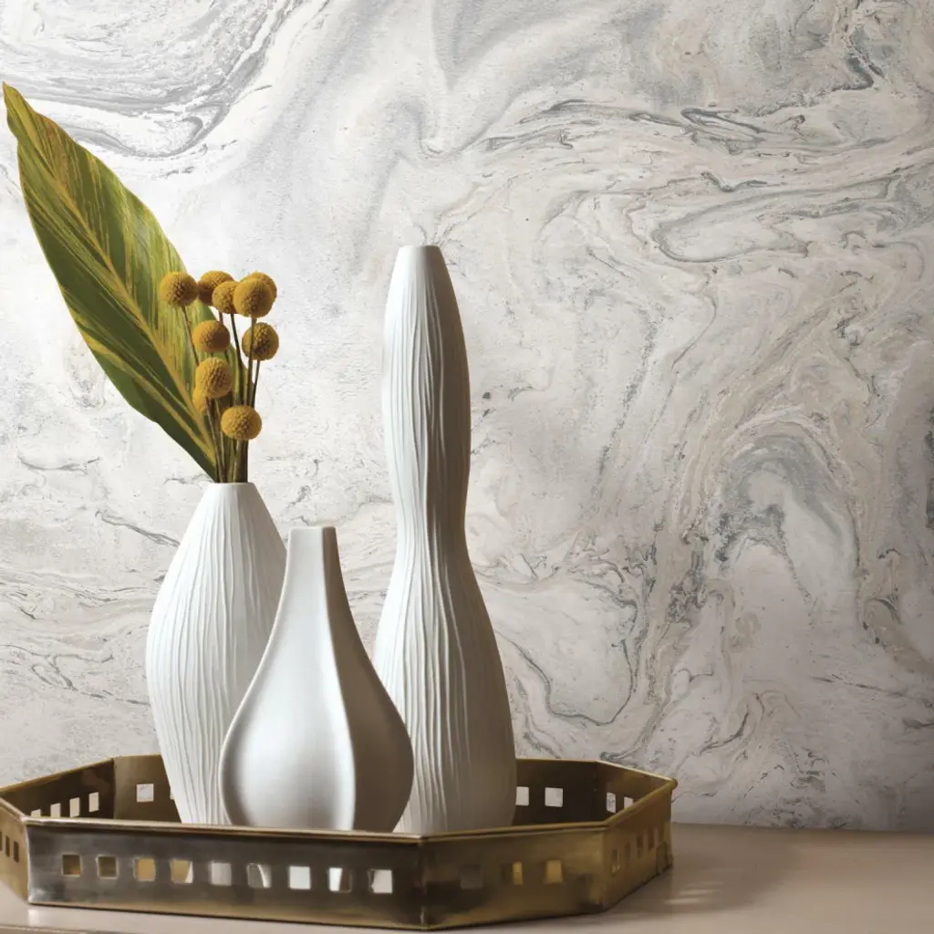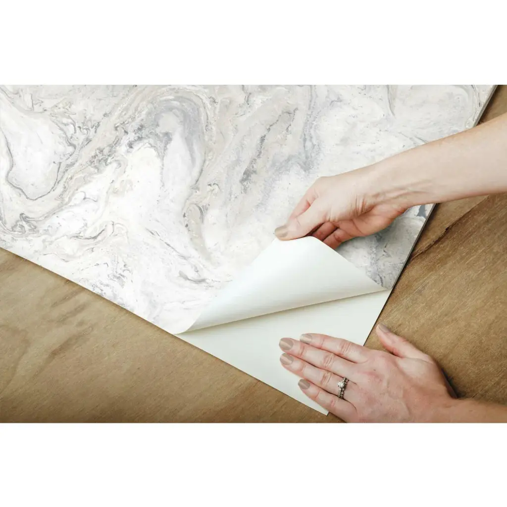 This product is a superior luxury non-woven peel and stick wallpaper, which removes easily in full strips without damage to surfaces. Pattern Oil & Marble creates a dance of colorful marbling inspired by the tides and motion of oil on water. Includes 1 roll - 27 in x 20 ft = 45 sq ft with a drop match and 24 in repeat.