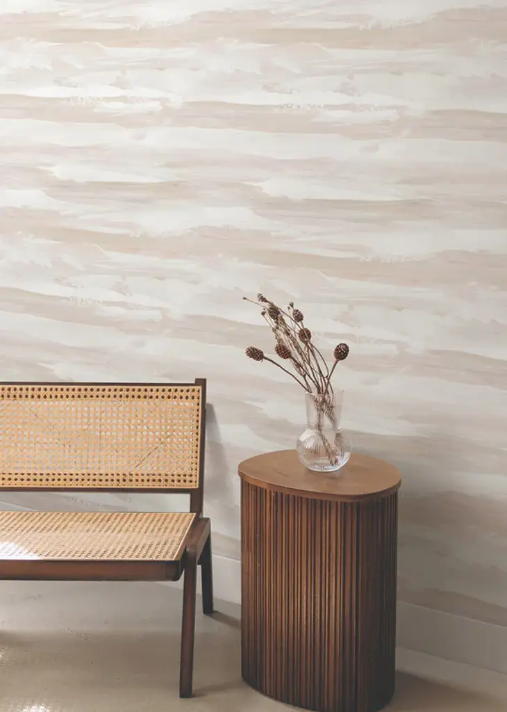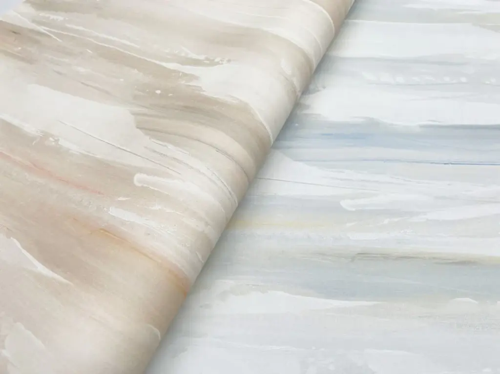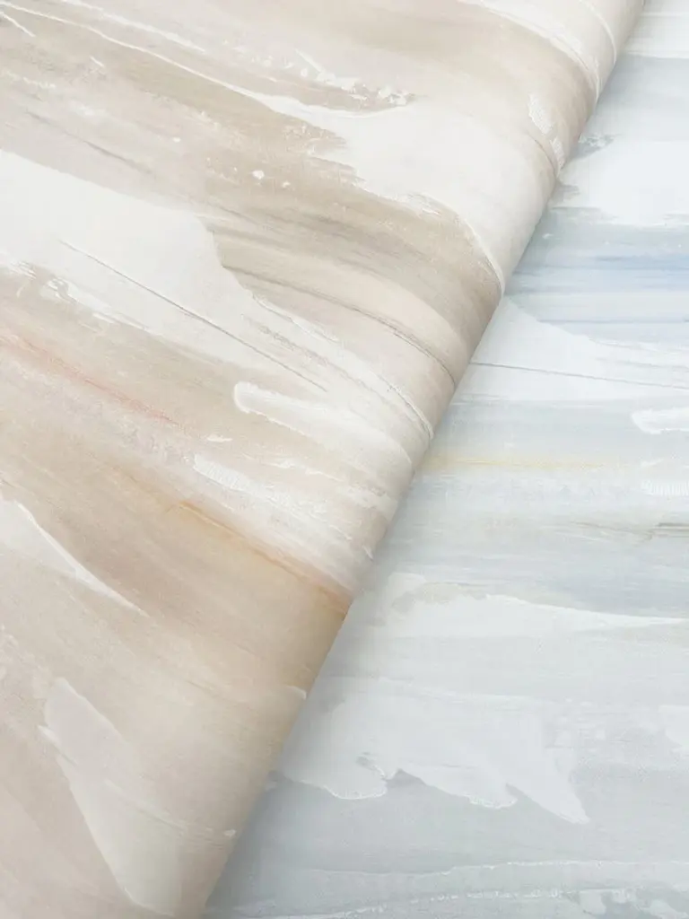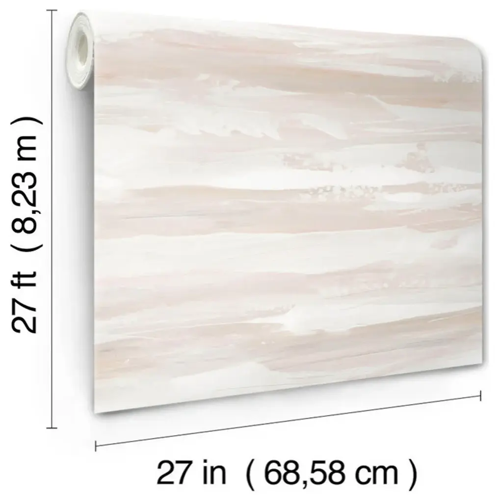 Smooth washes of pale pink, apricot, tan, and taupe accented with white splatters and veining offers an elevated take on ombre in On The Horizon. This On The Horizon Wallpaper measures approximately 27 inches wide by 27 feet long, measuring approximately 60.8 square feet per roll. Artistic experimentation with the interplay of form, color and texture has led to an avant-garde reimagining of familiar design motifs. Unpasted non woven material; 24-in repeat, straight match; Washable and strippable; 27-in by 27-ft long roll; Covers about 60.8 square feet