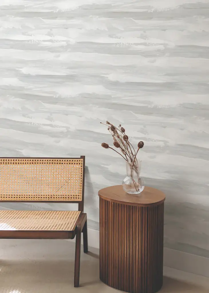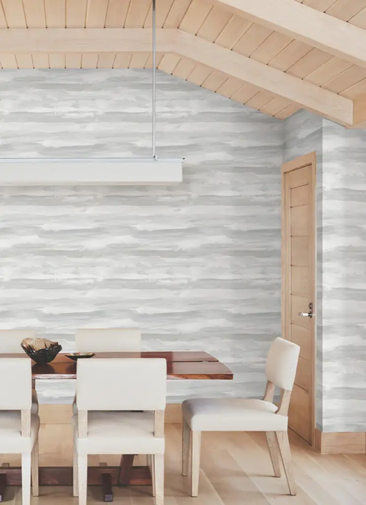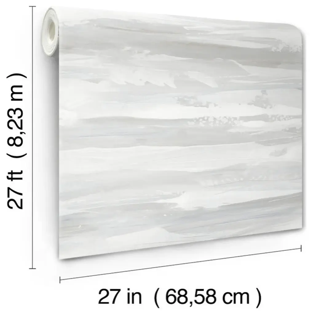 Smooth washes of grey and pale blue accented with white splatters and veining offers an elevated take on ombre in On The Horizon. This On The Horizon Wallpaper measures approximately 27 inches wide by 27 feet long, measuring approximately 60.8 square feet per roll. Artistic experimentation with the interplay of form, color and texture has led to an avant-garde reimagining of familiar design motifs. Unpasted non woven material; 24-in repeat, straight match; Washable and strippable; 27-in by 27-ft long roll; Covers about 60.8 square feet