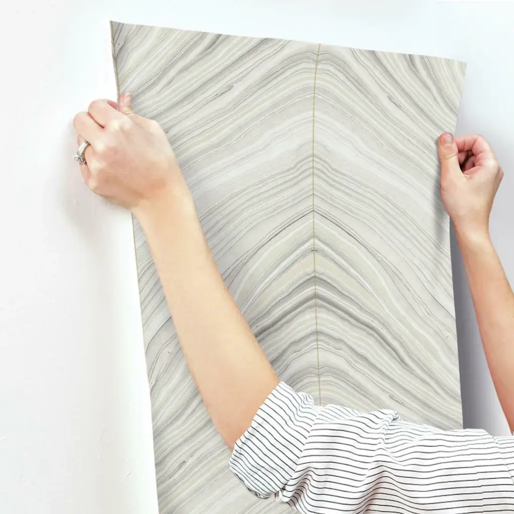 Capturing the artistry of nature, this realistic design of irregular lines and varied color looks like layers of sedimentary rock. Onyx Strata Wallpaper goes one better, however, with the addition of occasional slender veritical bands. This Onyx Strata Wallpaper measures approximately 27 inches wide by 27 feet long, covering About 60.8 square feet per roll. Printed on an unpasted paper and created with the highest quality of craftsmanship, this wallpaper is easy to install; simply apply paste to paper and hang. Unpasted heavy weight paper material; 24-in repeat, straight match; Washable and peelable; 27-in by 27-ft long roll; Covers about 60.8 square feet