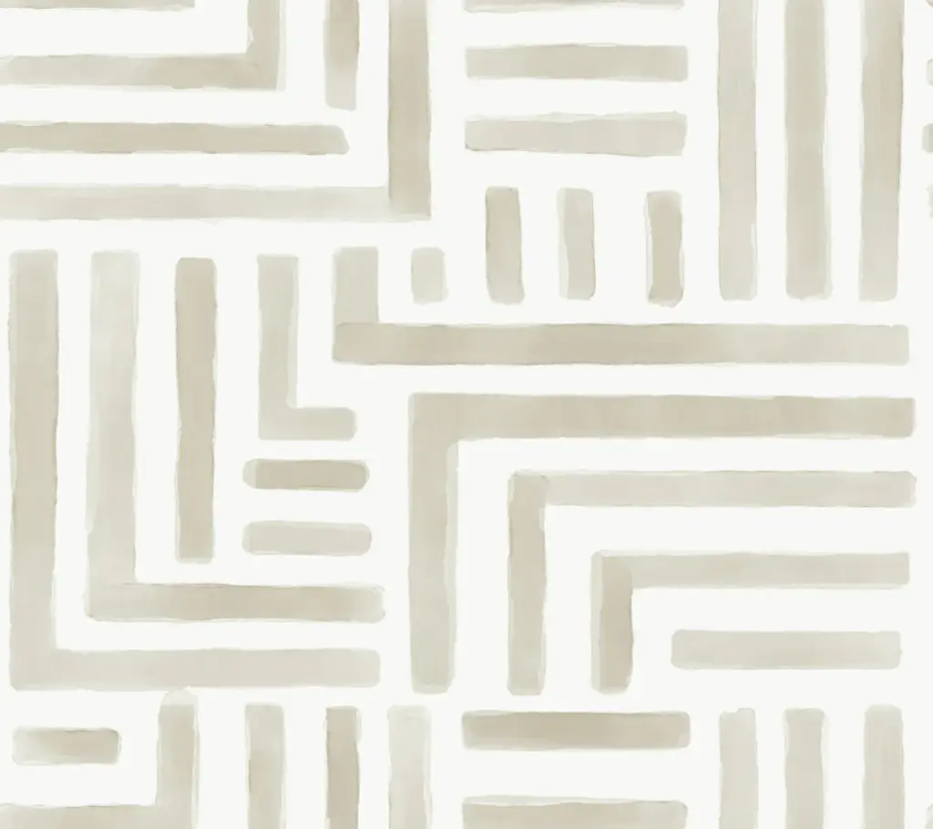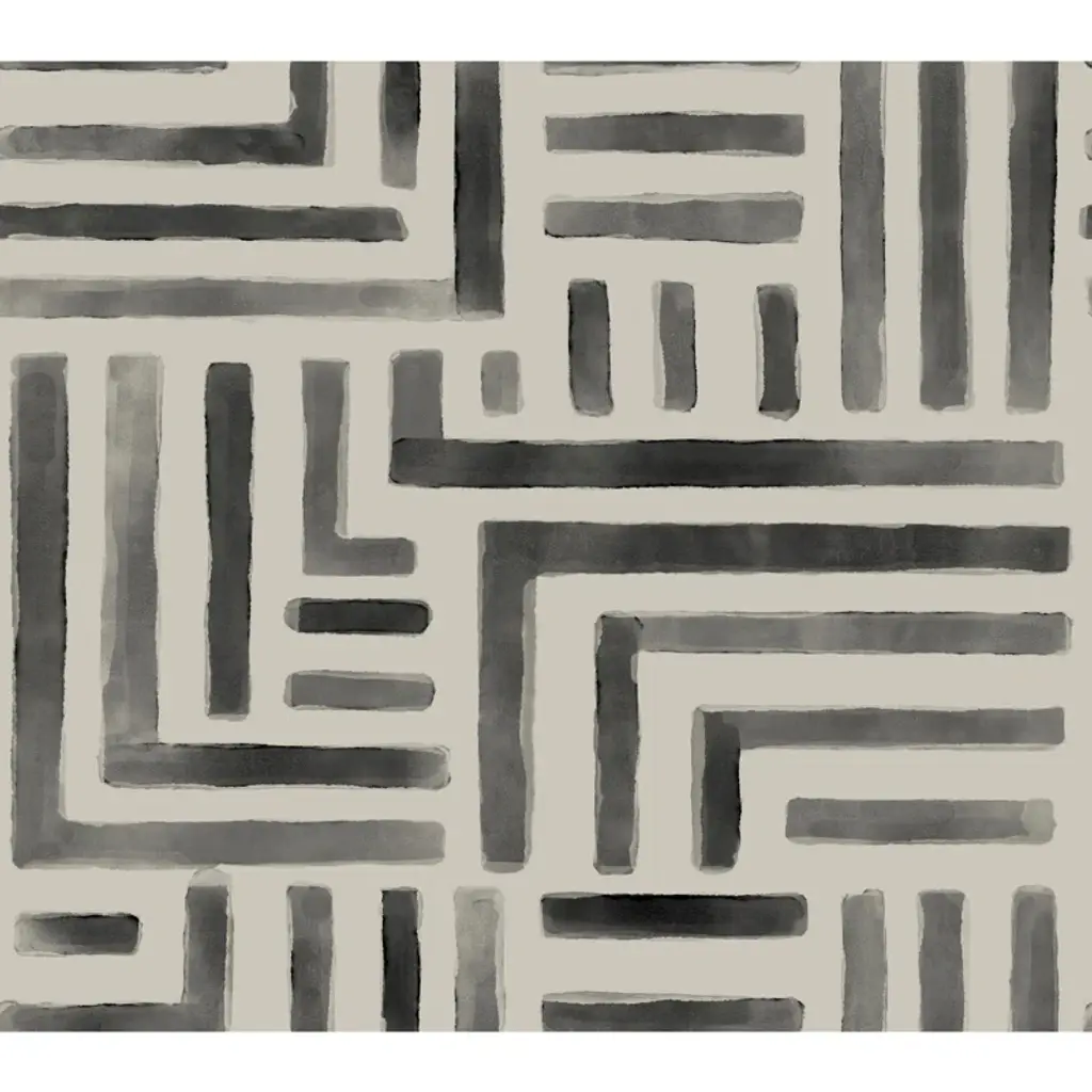 The meditative watercolor effect elicited by Painterly Labyrinth recreates the complex geometric structure of an ancient maze shown in dark neutral beige. This Painterly Labyrinth Wallpaper measures approximately 27 inches wide by 27 feet long, measuring approximately 60.8 square feet per roll. A retrospective from the private collections of Christiane Lemieux featuring global, artistic, and handcrafted designs. Unpasted non woven material; 24-in repeat, straight match; Washable and strippable; 27-in by 27-ft long roll; Covers about 60.8 square feet