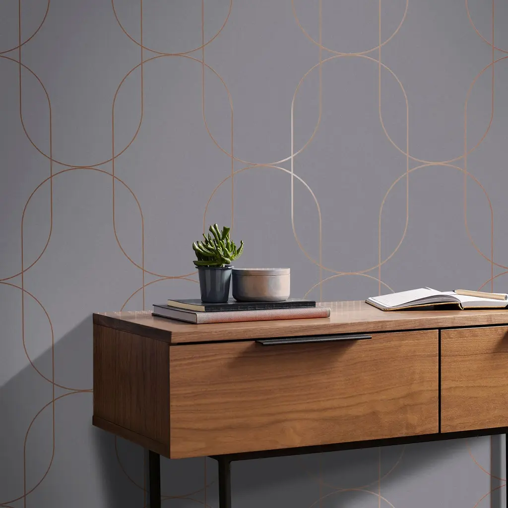 Palais Grey & Rose Gold is a gorgeous light grey wallpaper with hints of metallic rose gold, all complimented with a large-scale geometric pattern. This modern design adds a subtle touch of elegance and flair to your home, all whilst boasting a modern color palette and a textured substrate. From the Exclusives collection: Top quality wallpaper designs exclusive to Graham & Brown! These patterns and colors are printed and designed with trends and quality in mind. Featuring some of our best selling patterns, as well as 2021's Wallpaper of the Year: Timepiece. Material: Non-woven Features: Washable, Paste the Wall Match Type: Straight Design Repeat: 25.19" Roll Dimensions: 20.5 inches wide x 33 feet long - approximately 56 square feet. Please note: Burke Decor does not accept wallpaper returns at this time. Why? Wallpaper is produced in batches (similar to tile) and due to dye-lot variations that occur based on when the rolls are produced, we are unable to accept returns. We accept and offer free shipping on all wallpaper exchanges for all wallpaper that has remained unopened.