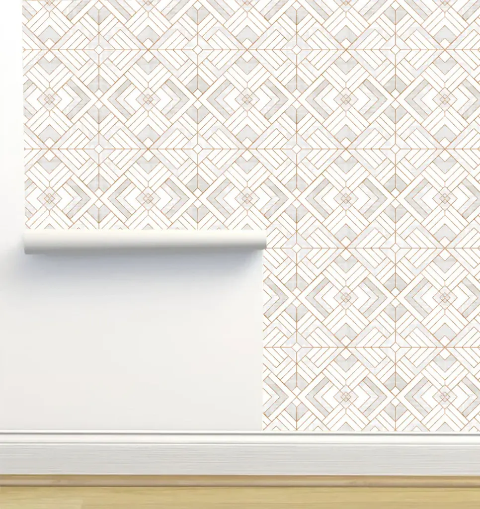 Oversized diamonds within Palisade form as the geometric crossing of lines twist into a ribbon of angled stripes, shown in flaxen yellow on white. This Palisade Wallpaper measures approximately 27 inches wide by 27 feet long, measuring approximately 60.8 square feet per roll. The distinction of timeless style. Unpasted non woven material. 25.25-in repeat, straight match. Washable and strippable. 27-in by 27-ft long roll. Covers about 60.8 square feet